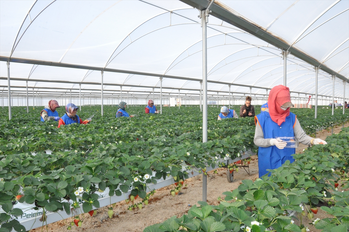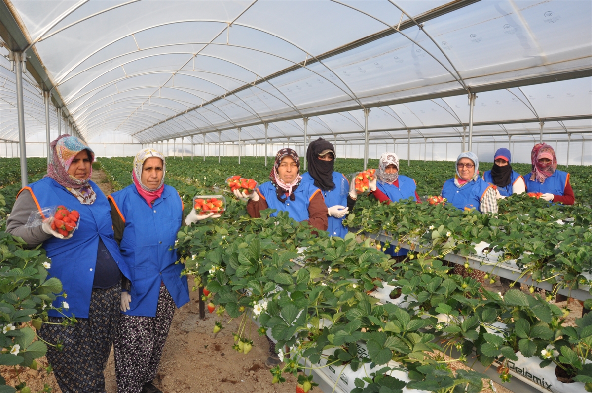 MERSİN (AA) – Mersin'in Silifke ilçesinde örtü altında topraksız yetiştirilen çilekler toplandı.