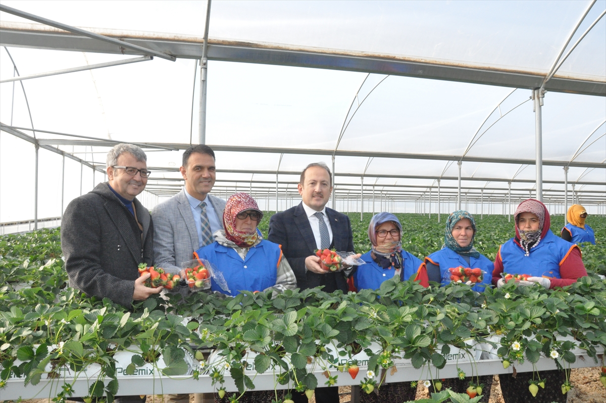 Vali Ali Hamza Pehlivan, Kurtuluş Mahallesi'ndeki serada topraksız üretilen çileklerin hasadına katıldı.