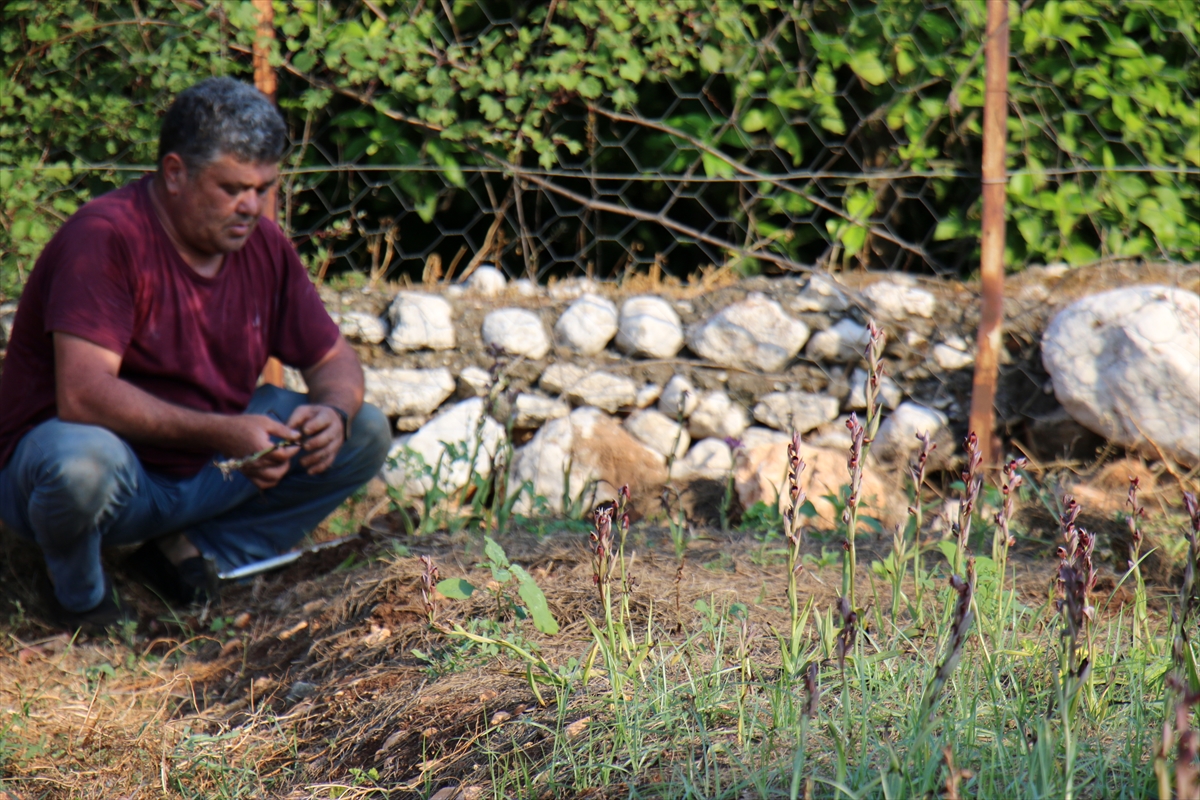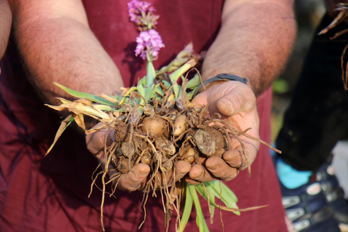 MERSİN (AA) – Mersin'in Erdemli ilçesinde, Toros Dağları'nın eteklerine deneme amaçlı ekilen salep orkidesinin hasadına başlandı.