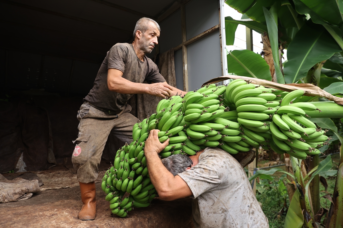 Kokusu, tadı ve kabuğunun ince olması sebebiyle ithal muzlara oranla daha çok tercih edilen ürün, sabahın erken saatlerinde işçiler tarafından toplandı.