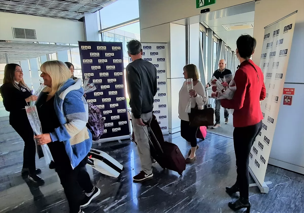 TAV Havalimanları'ndan yapılan açıklamaya göre, EasyJet Havayolları'nın A-320 tipi uçağıyla 166 yolcu Bristol'den Bodrum'a geldi. İngiliz yolcular, terminalde çiçeklerle karşılandı.
