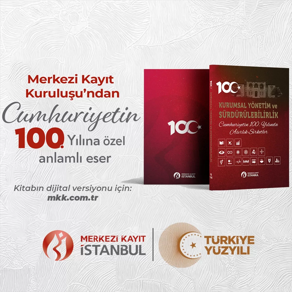 İSTANBUL (AA) – Merkezi Kayıt Kuruluşu (MKK), Türkiye Cumhuriyeti'nin 100. yıl dönümüne özel hazırladığı "Kurumsal Yönetim ve Sürdürülebilirlik: Cumhuriyetin 100. Yılında Asırlık Şirketler" isimli prestij kitabını yayımladı.