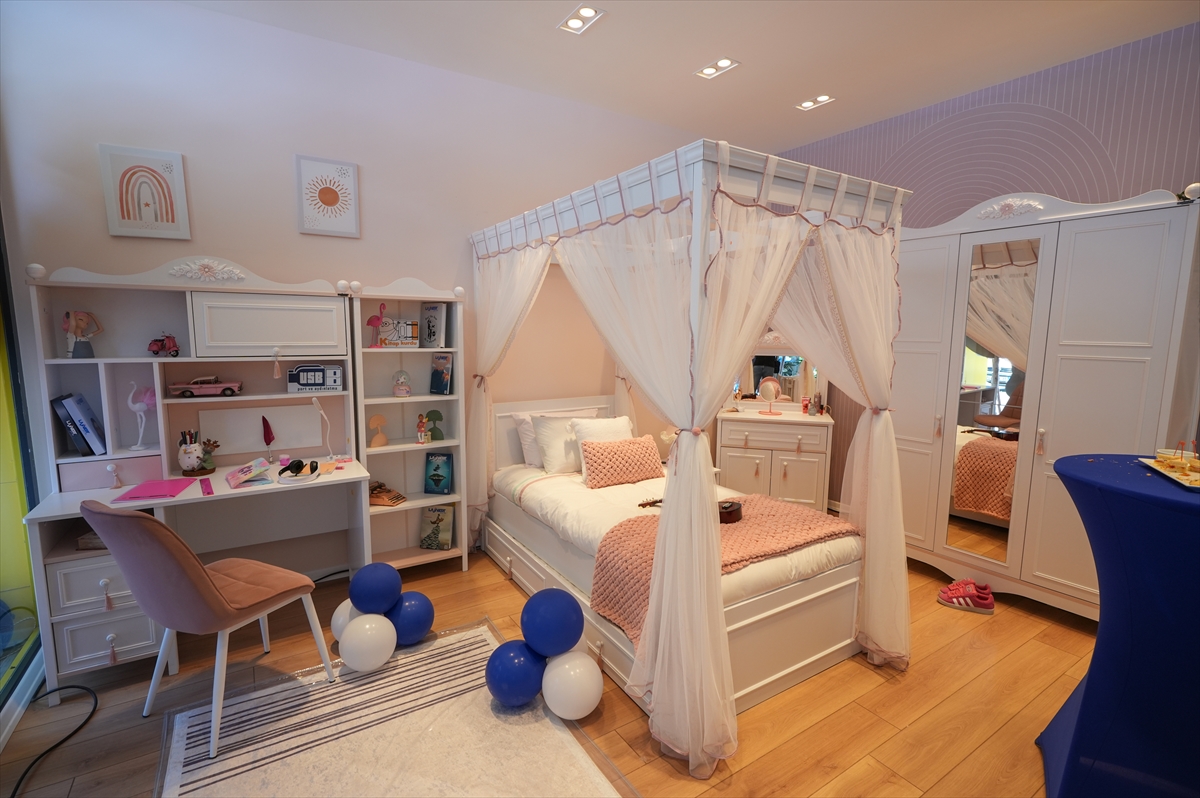 Yaklaşık 1000 metrekarelik iki katlı mağazada bebek, çocuk ve genç odası takımları, müşterilerin beğenisine sunuldu.