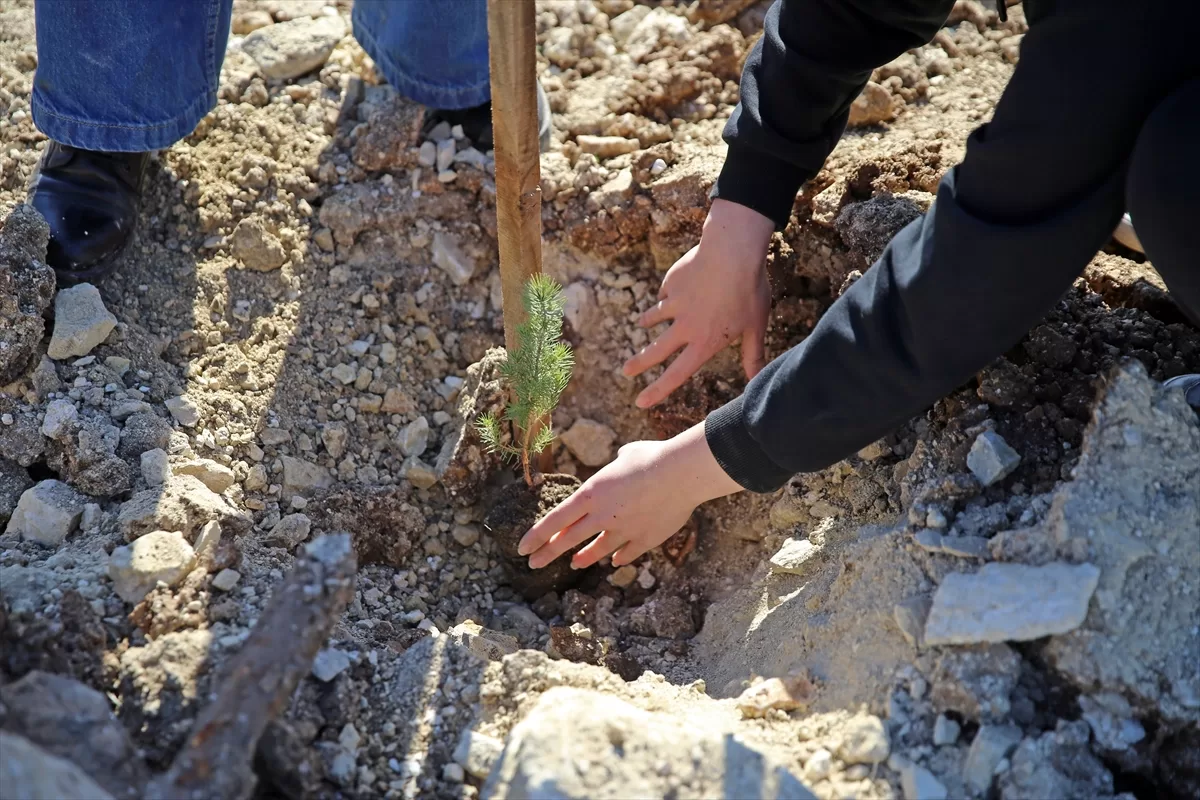 Can suyu verilen fidanların yanına dikilen destek çubuklarına bazı öğrenciler isimlerini yazdı.