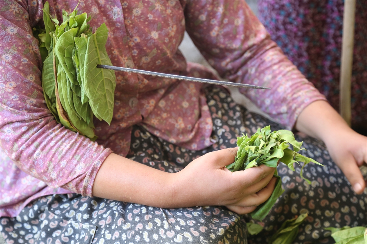 Aile bireylerinin katılımıyla, komşularla, işçilerle sabahın erken saatlerinde ve akşam serinliğinde en az 3 defa hasat edilen tütün, daha sonra eve getirilerek, şiş yardımı ile iplere diziliyor, kurutuluyor ve satışa sunuluyor.