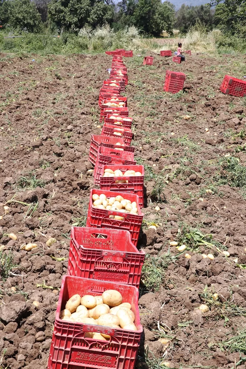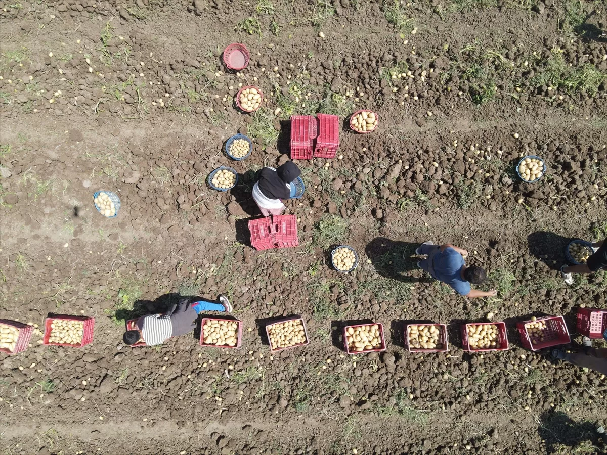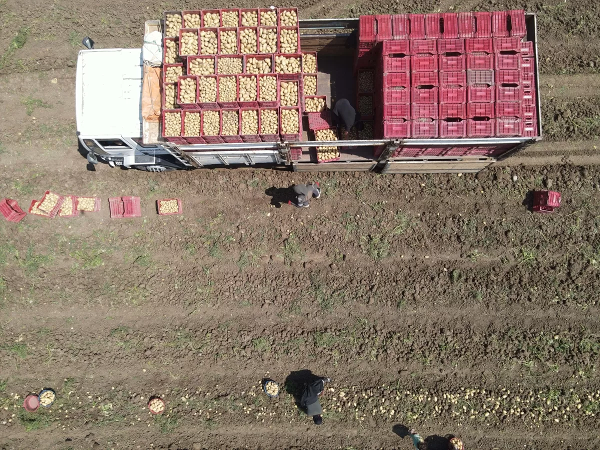 Yaklaşık bir aydır hasadı yapılan patates, tarım işçileri tarafından özenle toplanarak selelere konuluyor. Kasalanarak kamyona yüklenen patatesler, manav ve pazar tezgahlarında yerini almak üzere hallere gönderiliyor.