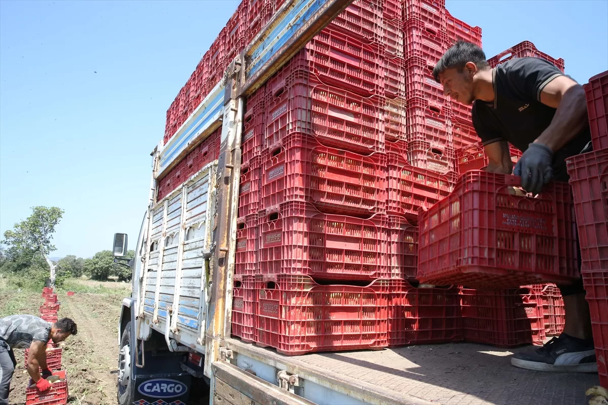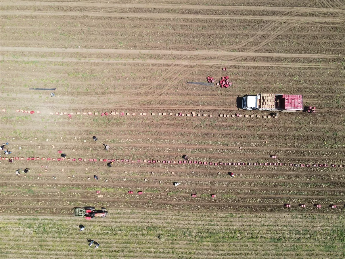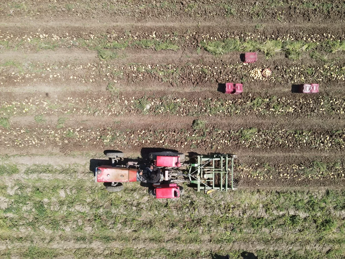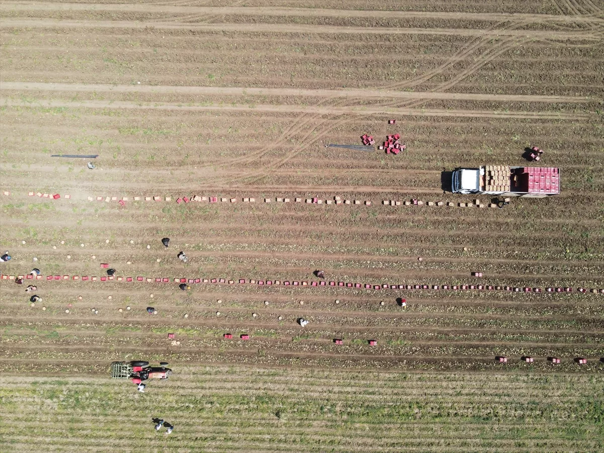 Yaklaşık bir aydır hasadı yapılan patates, tarım işçileri tarafından özenle toplanarak selelere konuluyor. Kasalanarak kamyona yüklenen patatesler, manav ve pazar tezgahlarında yerini almak üzere hallere gönderiliyor.