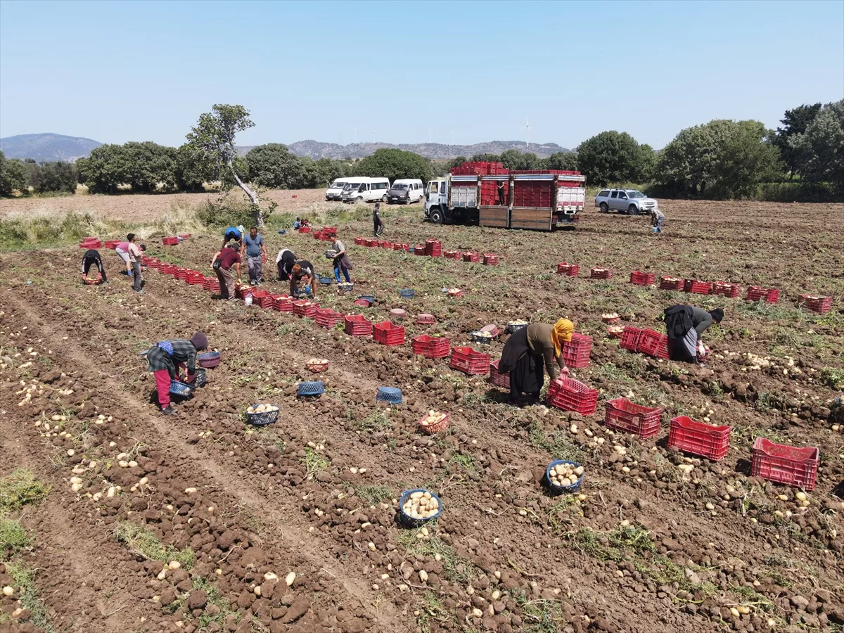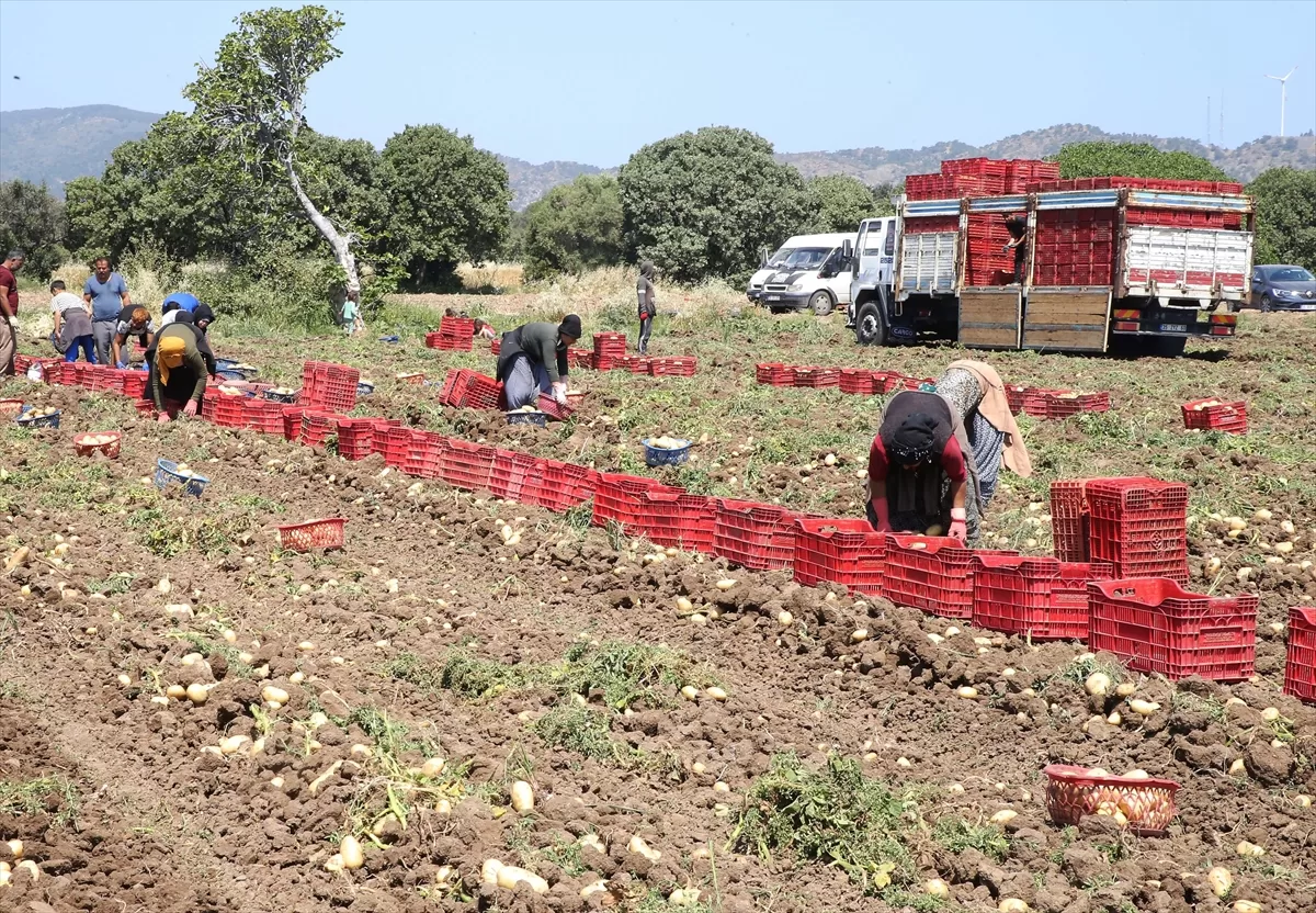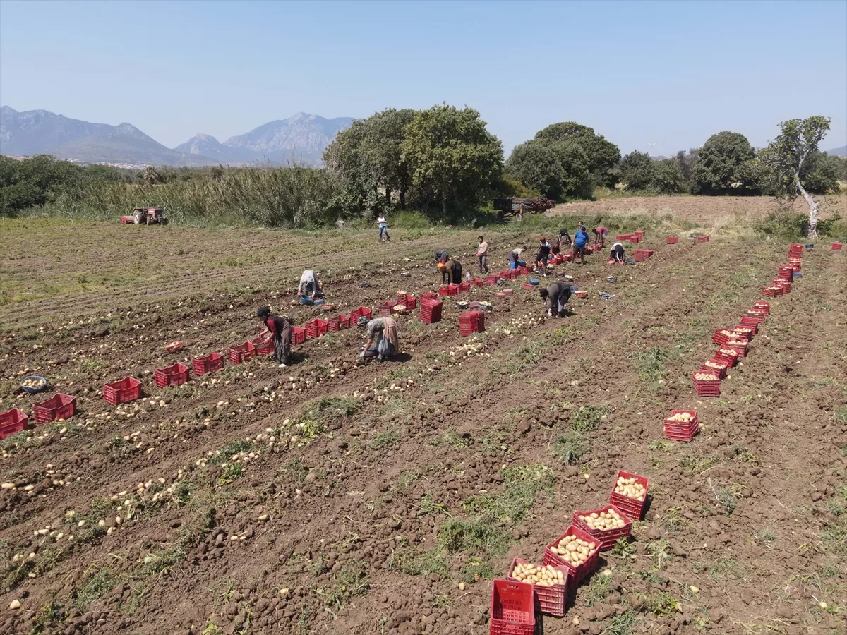 Datça ilçesinde 2 bin dekar alanda hasadı yapılan turfanda patatesin son sökümleri yapılıyor.