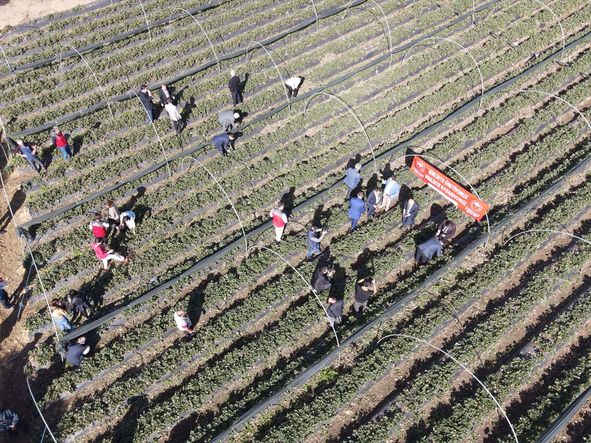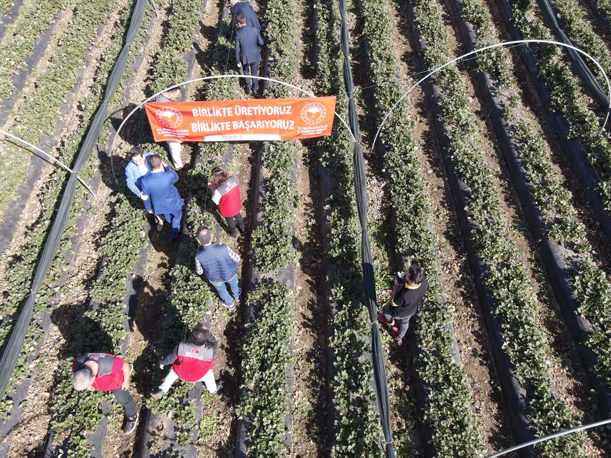 Bu kapsamda Bencik Mahallesi'nde oluşturulan çilek tarlasında, hasat ve dikim töreni düzenlendi.