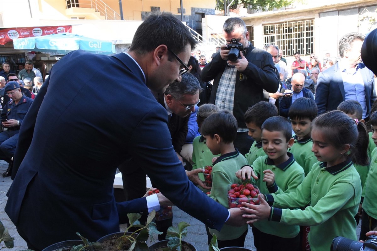 Programa katılan öğrencilere de çilek ikramı yapılırken, saksılarda hazırlanan çilek fideleri dağıtıldı.