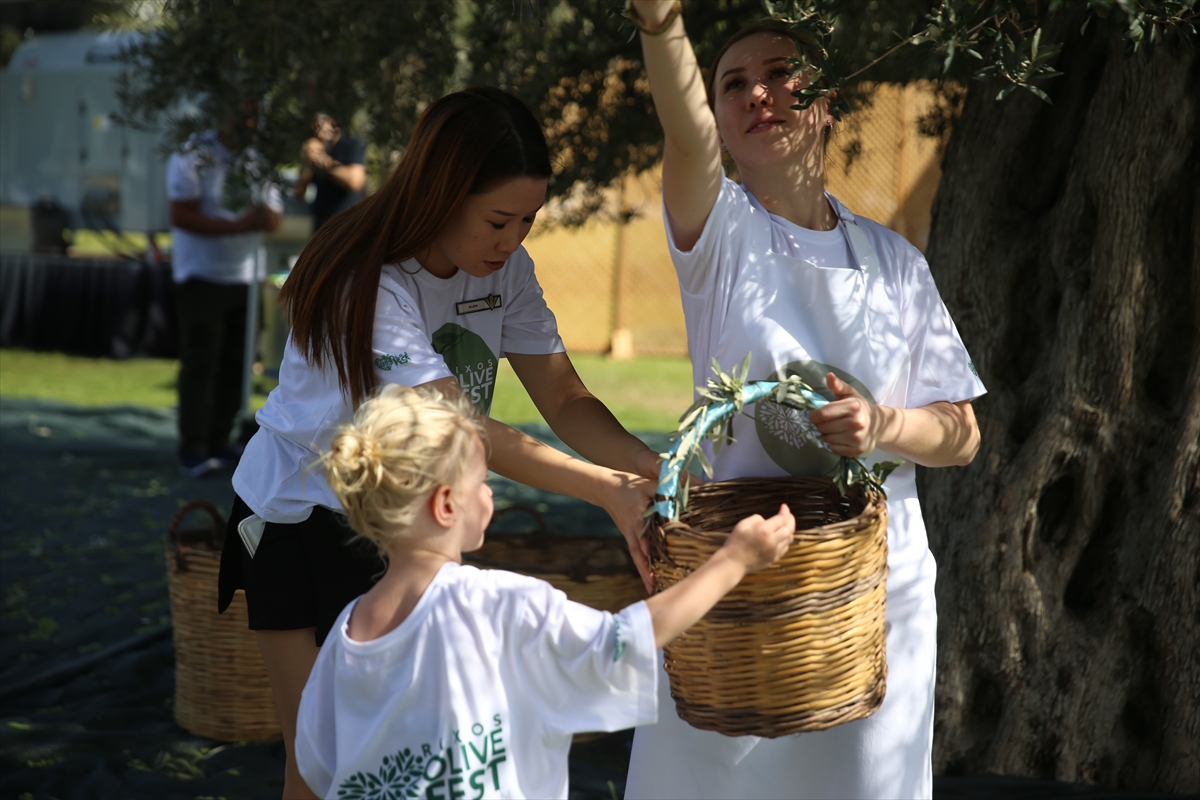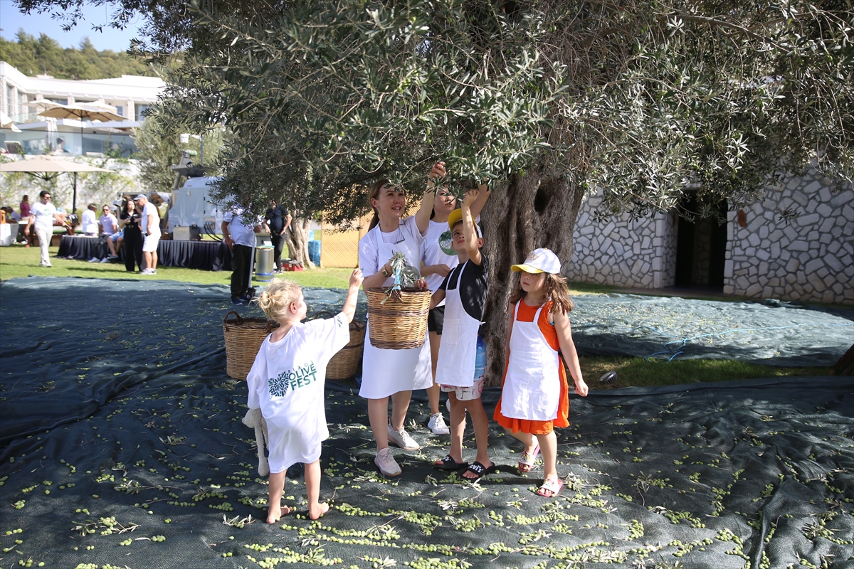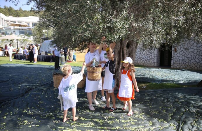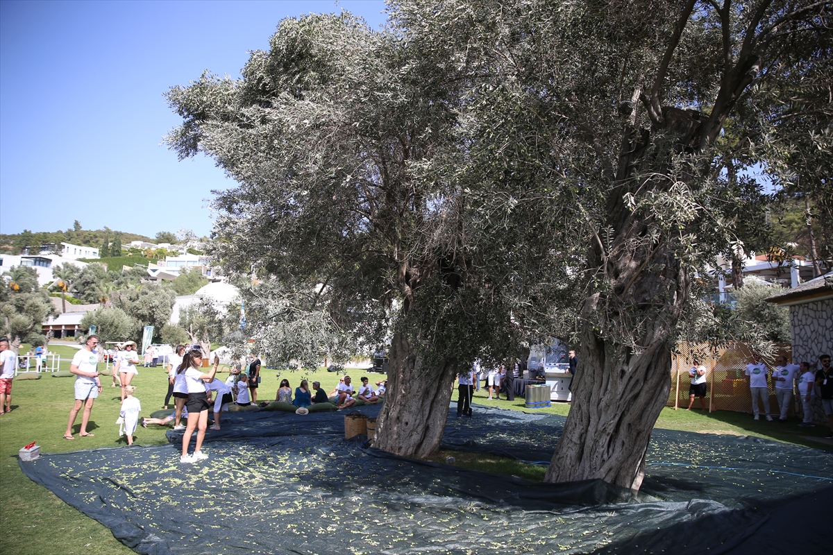MUĞLA (AA) – Bodrum'da turistler, oteldeki 700 yıllık zeytin ağaçlarından hasat yaptı.