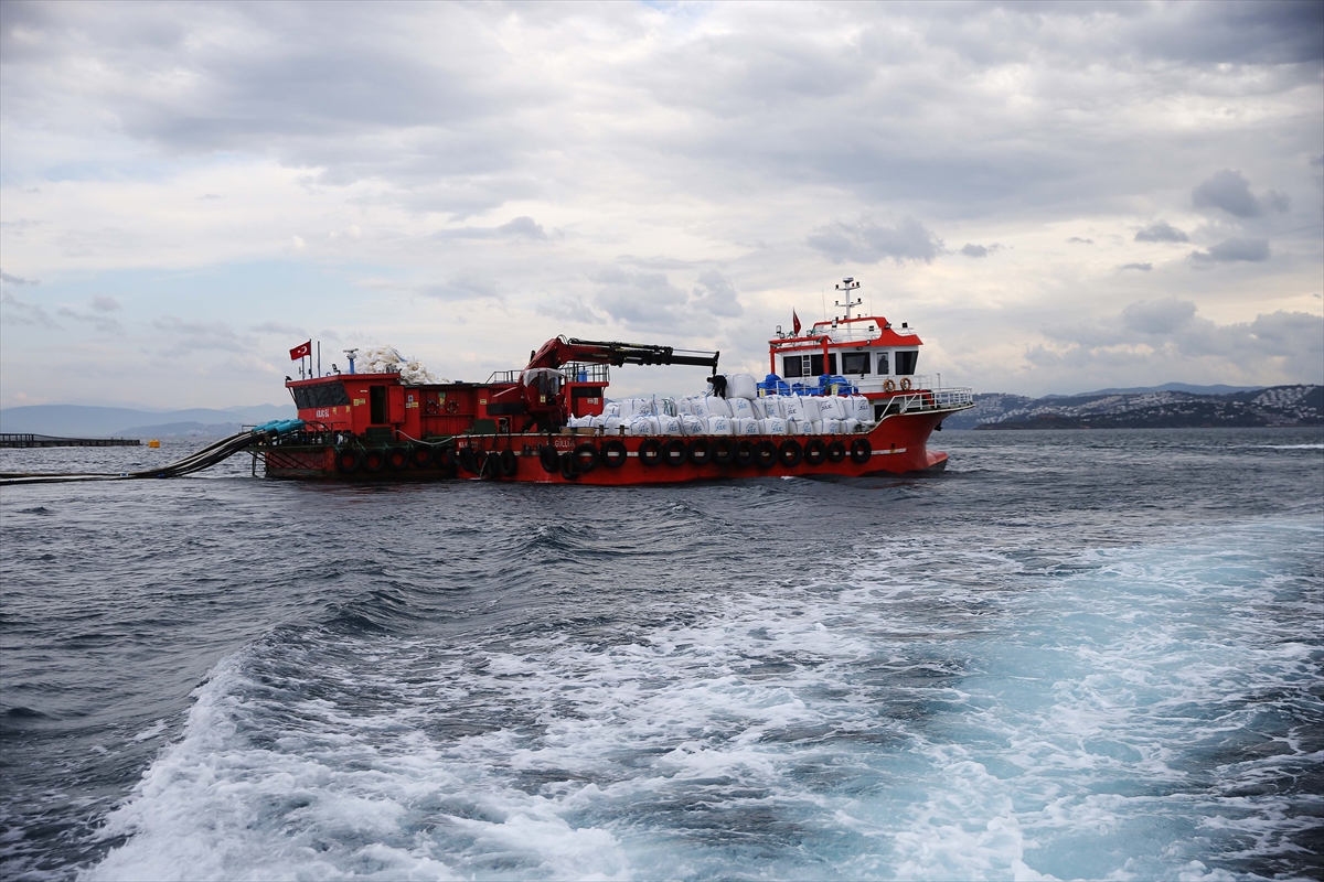 Kent merkezi ve ilçelerdeki tesislerde üretilen balıklar, üretim alanından fileli kepçeler yardımıyla alınarak işlenmek üzere tesislere götürülüyor.