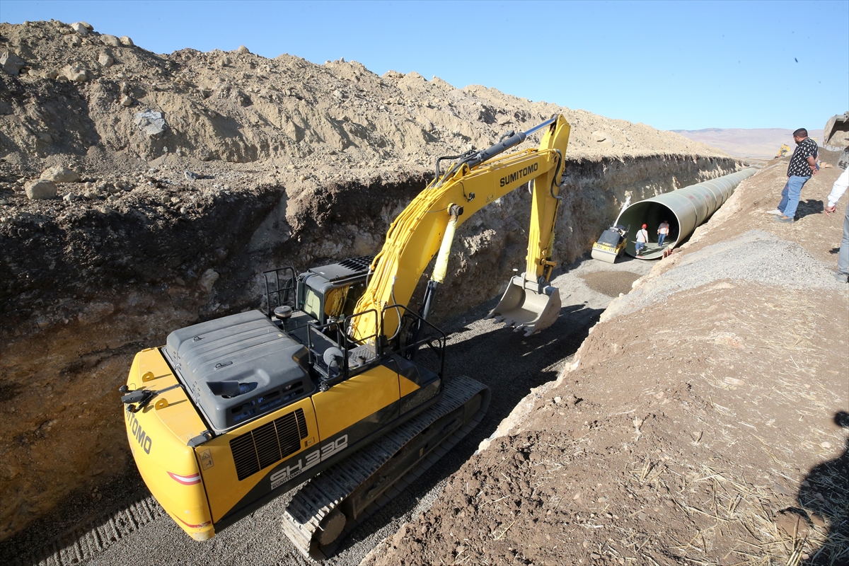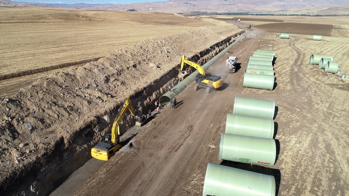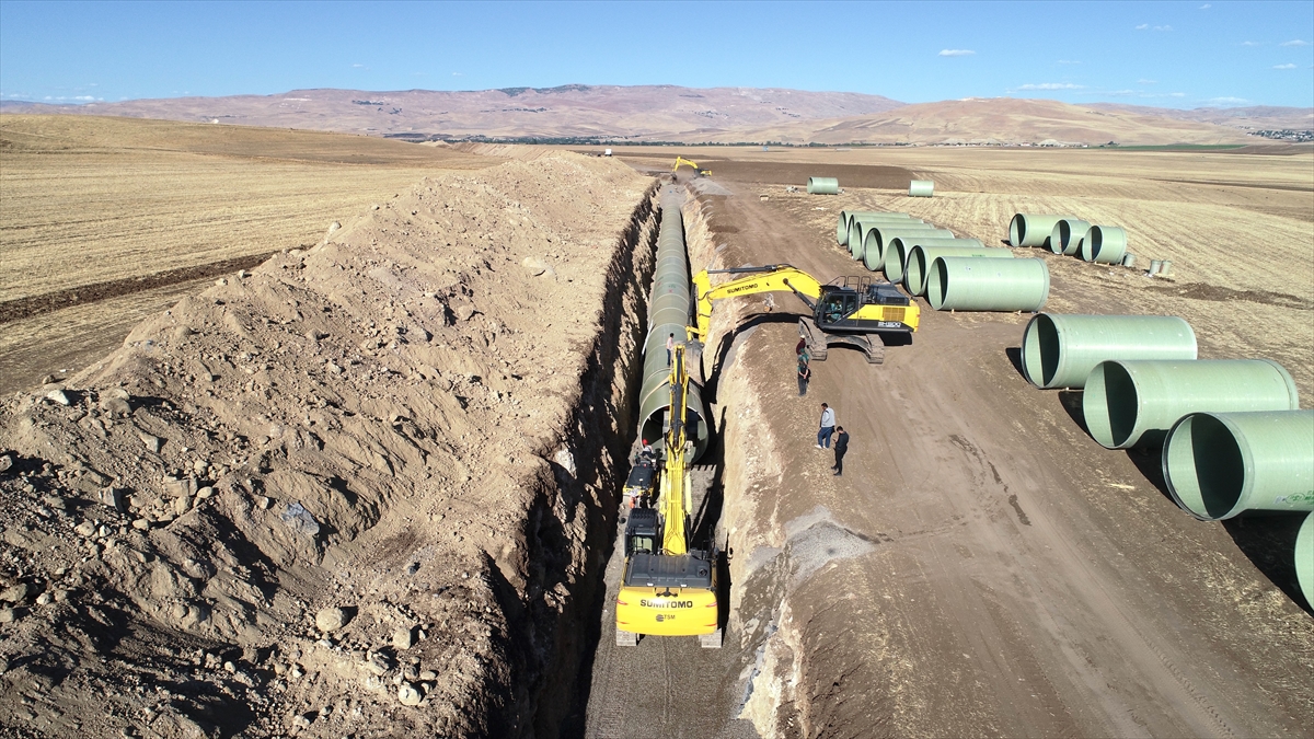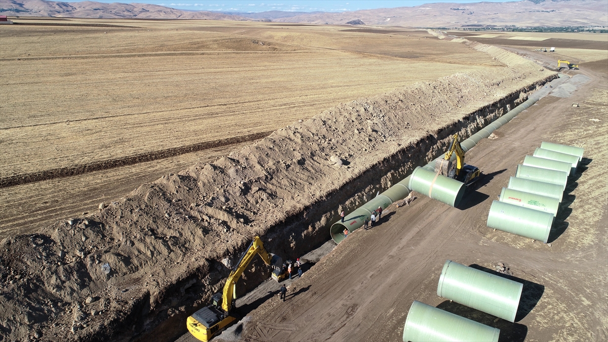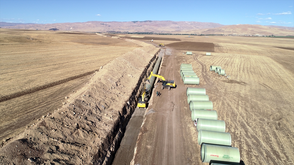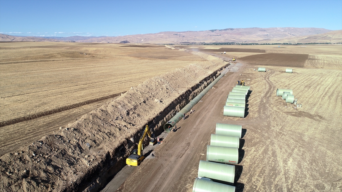 Mercimekkale köyü yakınlarından geçen Murat Nehri’ndeki suyun ovaya aktarılması için birinci etabına başlanan projede, 7 kilometrelik güzergaha 3 metre 20 santimetre çapında ve 7 ton ağırlığında dev çelik borular döşendi.