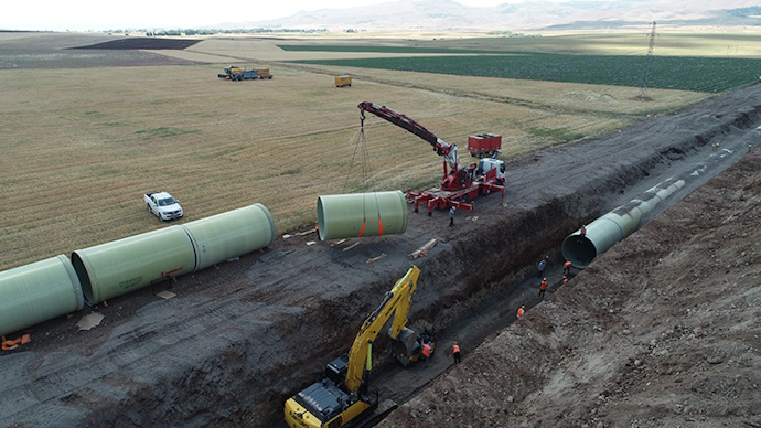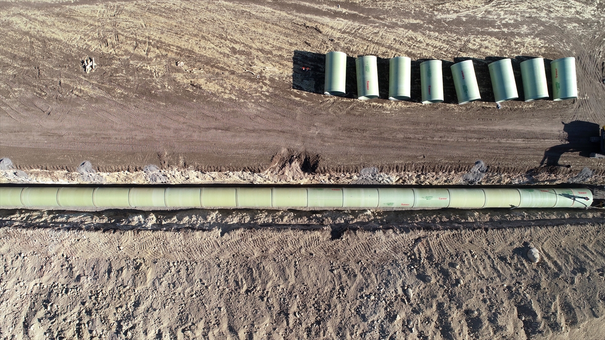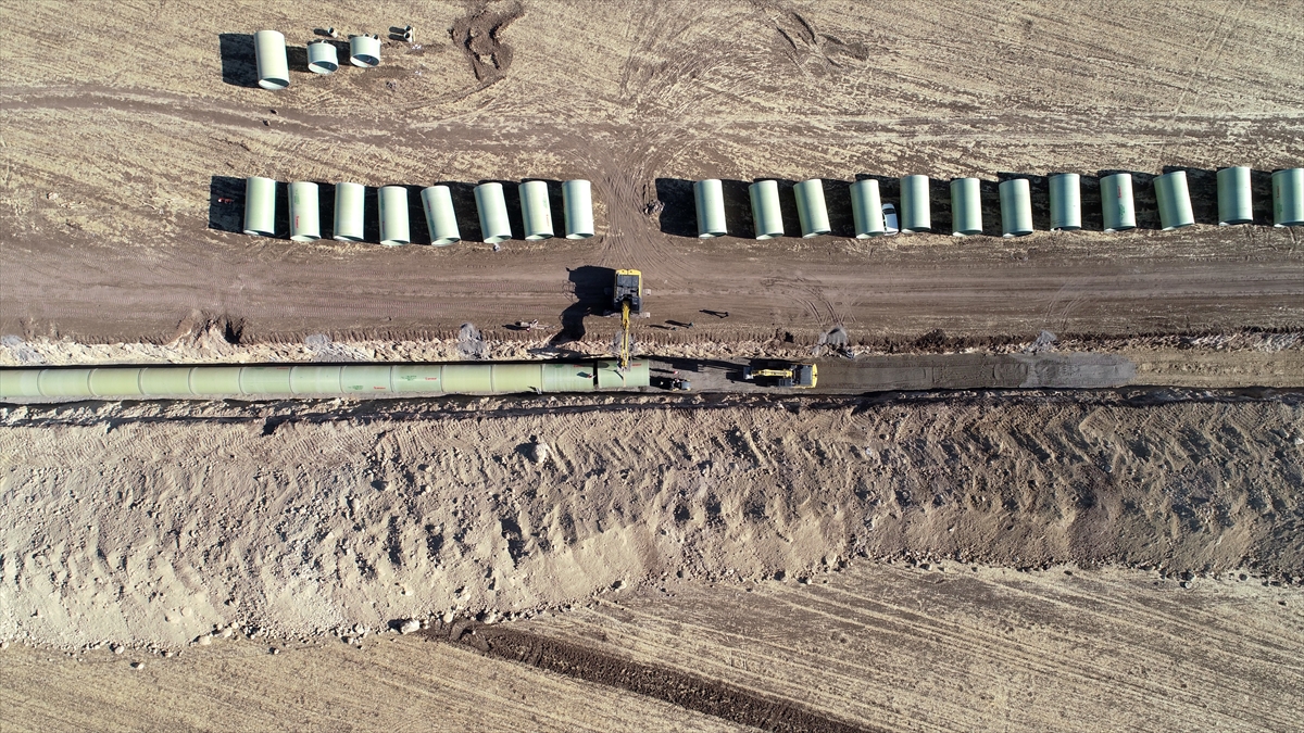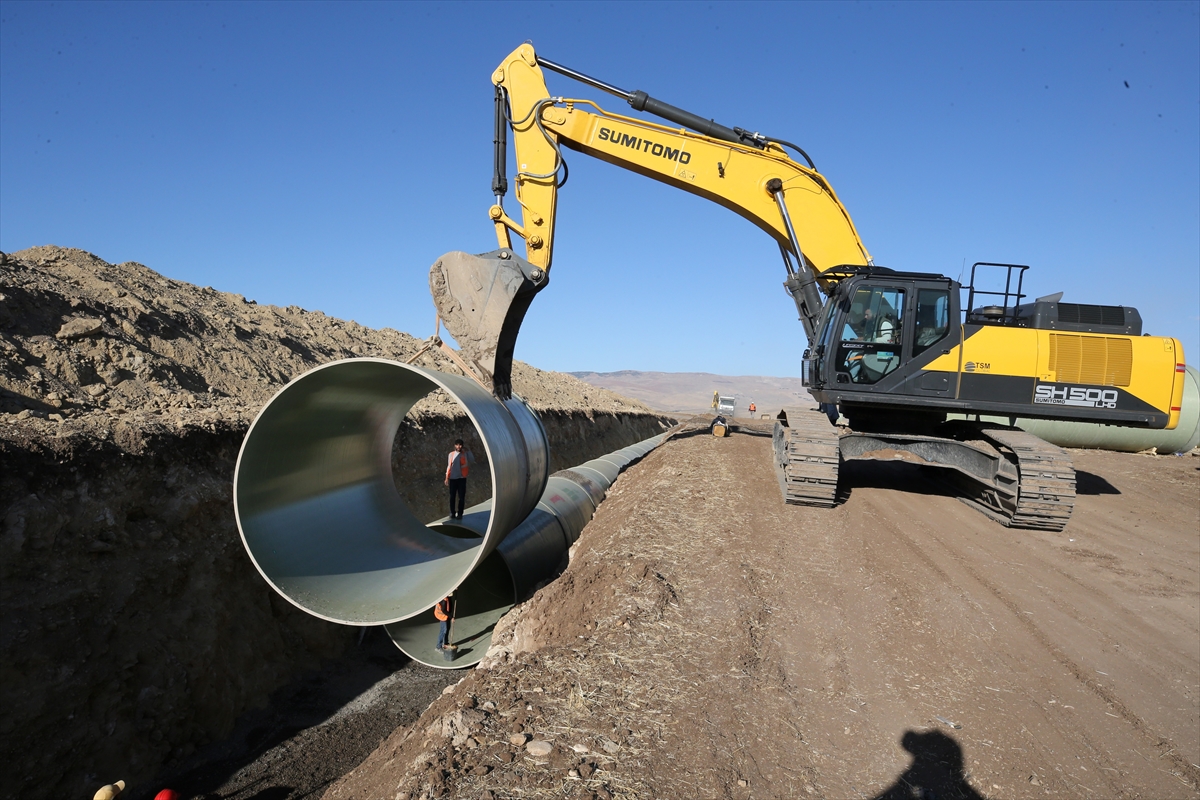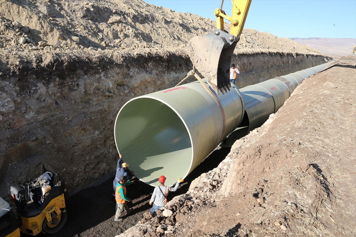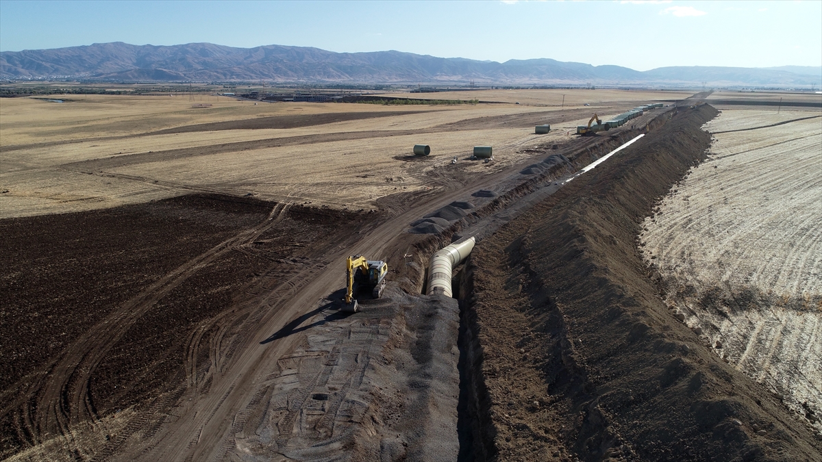 Mercimekkale köyü yakınlarından geçen Murat Nehri’ndeki suyun ovaya aktarılması için birinci etabına başlanan projede, 7 kilometrelik güzergaha 3 metre 20 santimetre çapında ve 7 ton ağırlığında dev çelik borular döşendi.