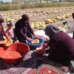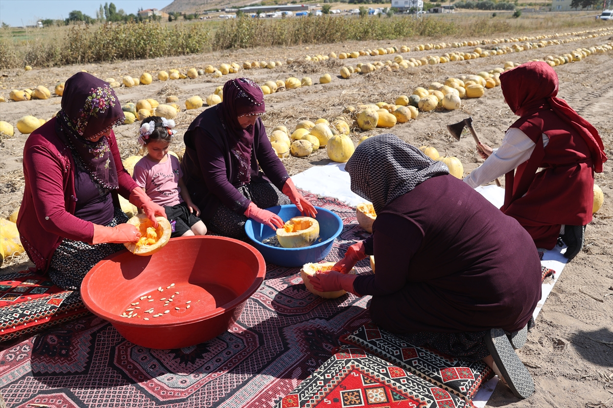 Hasada başlayan üreticiler, kimi yerde tarım aletleri yardımıyla kimi yerlerde ise geleneksel elle ayıklama yöntemiyle kabağın çekirdeklerini ayırıyor.