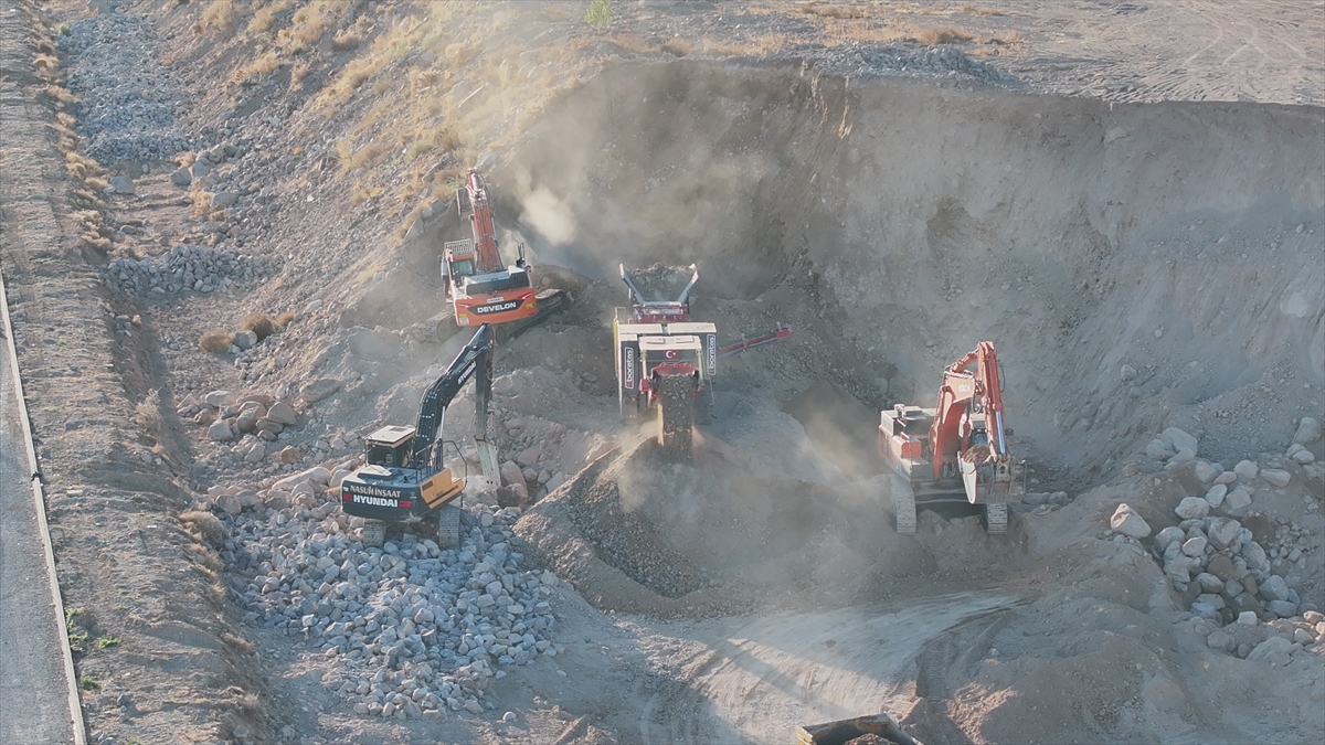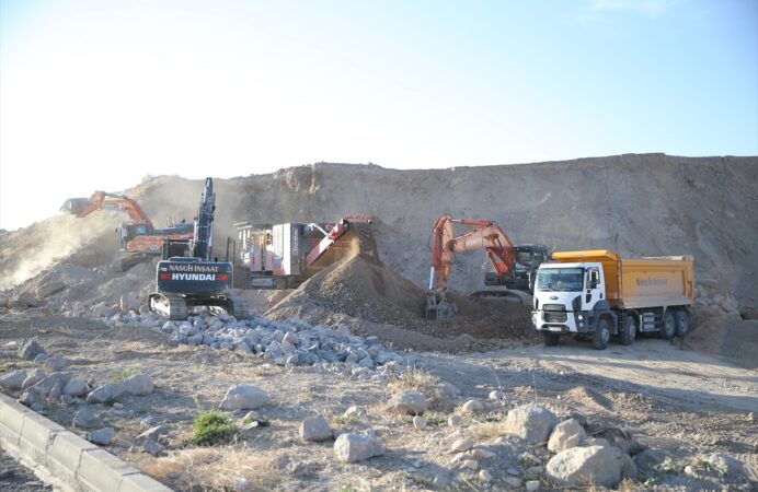 Peşin, hafriyat malzemelerini inceledikten sonra mobil konkasör aracılığıyla kırıp alt temel malzemesine dönüştürdüklerini belirtti.