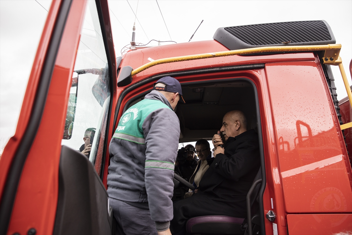 Araçları tek tek inceleyerek bilgi alan Kirişci, bir yangın söndürme aracına binerek, anons yaptı ve araçtan su atışı gerçekleştirdi.