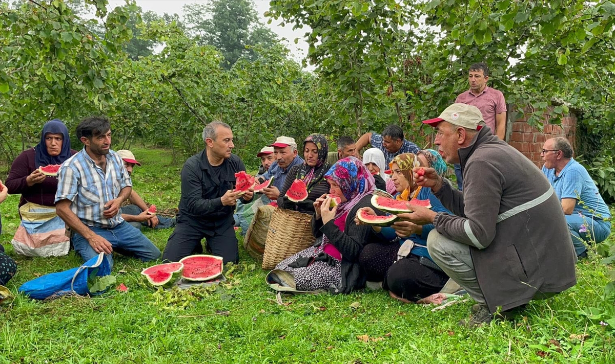 İşçilere karpuz ikramında bulunan Sonel, bahçe sahibine de bereketli bir hasat dönemi geçirilmesini temenni etti.