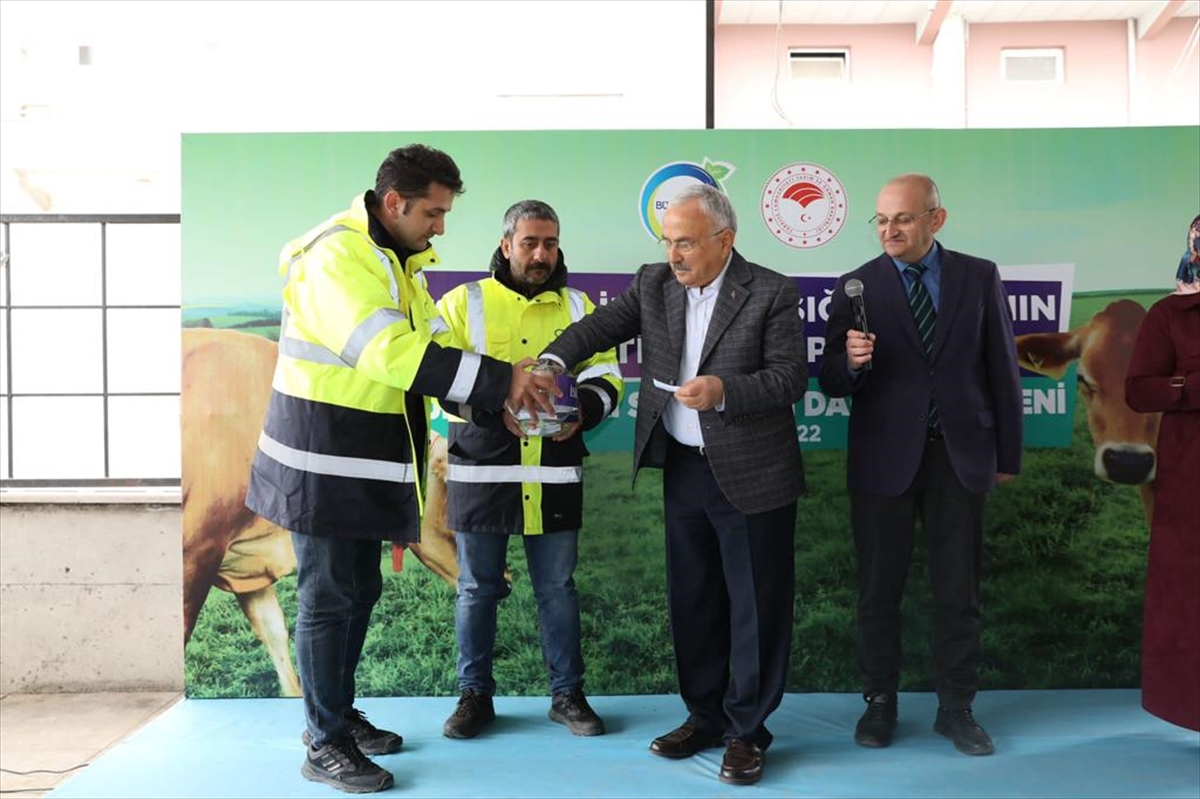 Konuşmaların ardından kurayla belirlenen 50 çiftçiye 300 inek teslim edildi.
