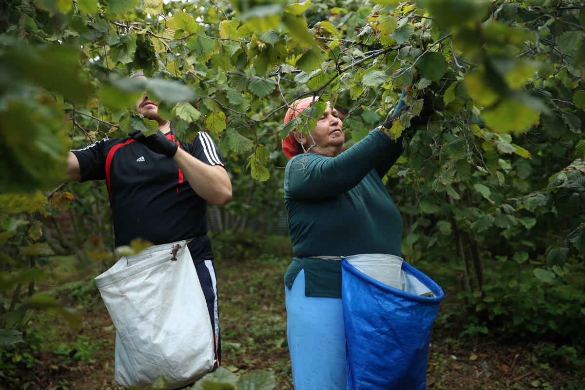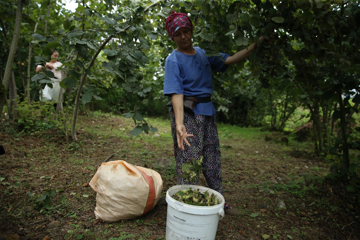 Altınordu ilçesine bağlı Saraycık Mahallesi'nde üreticilerden bazıları fındığı kendi imkanlarıyla bazıları da mevsimlik tarım işçileriyle topluyor.