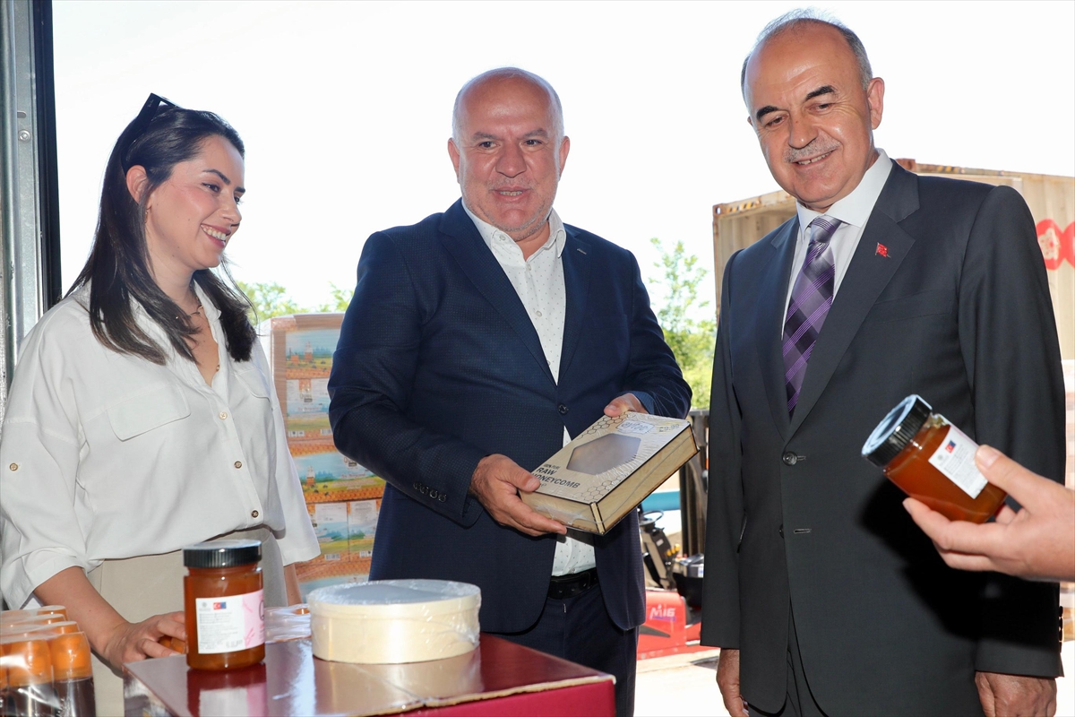 Konuşmaların ardından 17 ton balın yüklendiği tır, İngiltere'ye uğurlandı.