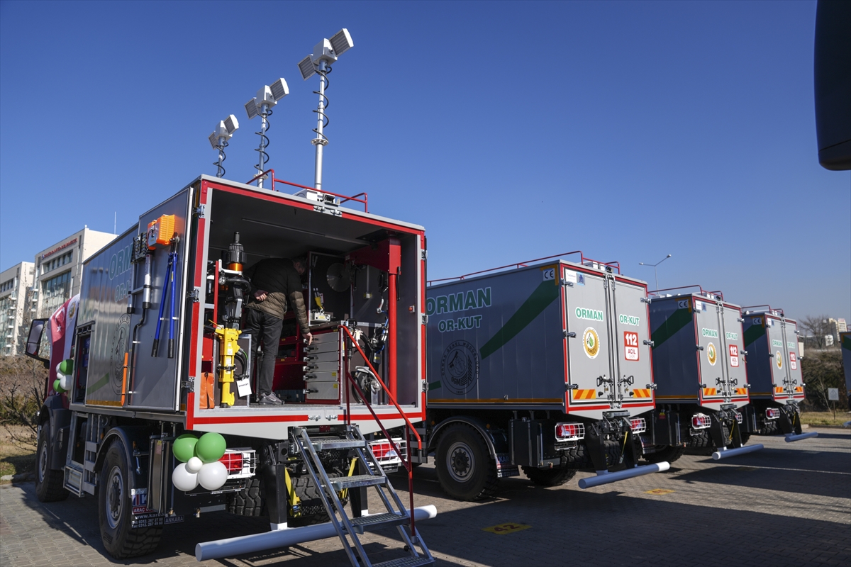 ANKARA (AA) – Tarım ve Orman Bakanı İbrahim Yumaklı, orman teşkilatının gücüne güç katacak yeni araçların envantere alınmasına ilişkin, "Orman yangınlarıyla mücadele için 65 arazöz, orman arama kurtarma timlerimizin (ORKUT) kullanacağı 8 afet ilk müdahale aracı ve 1 yangın mobil harekat merkezi yönetim aracı bugünden itibaren yeşil vatanımızı savunmak için saflarımıza katılmış olacak." dedi.