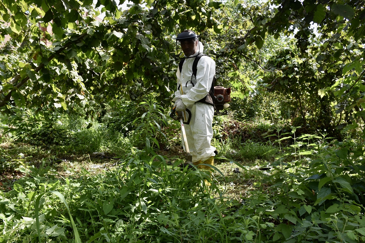 Giresun'da üreticiler otları temizleyerek bahçelerini hasada uygun hale getiriyor.
