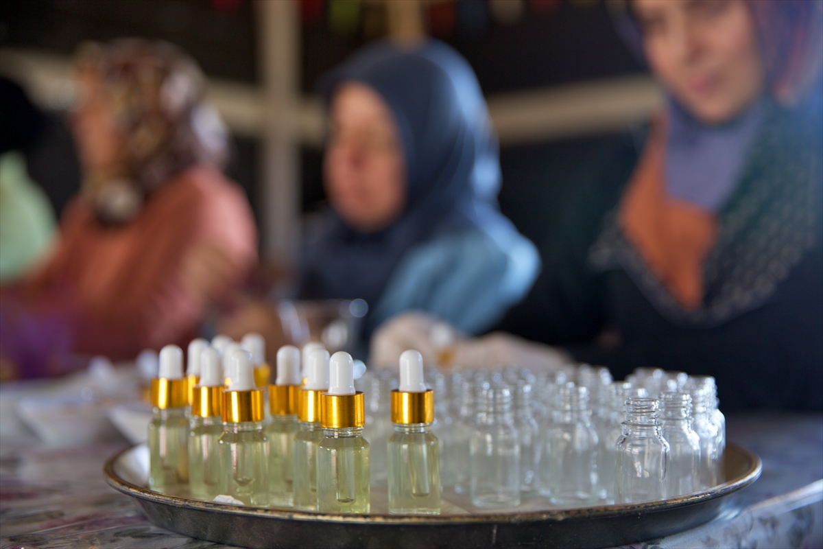 Kooperatif üyesi kadınlar, bahçeden topladıkları lavantadan da yağ, sabun ve mum gibi çeşitli ürünler elde ediyor.