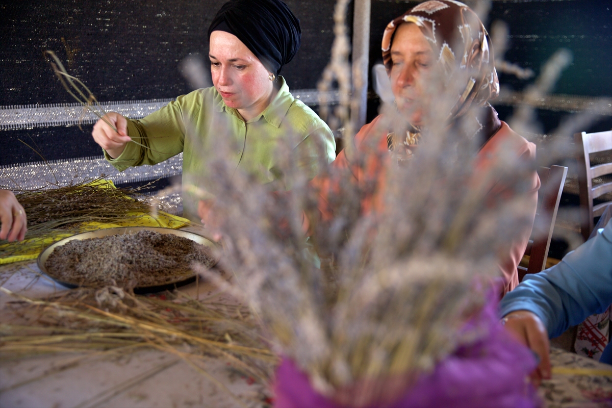 Bahçenin çapasından sulamasına ve lavantaların bakımına kadar her şeyiyle yakından ilgilenen kadınlar, burayı yeniden mor bir görünüme kavuşturdu.