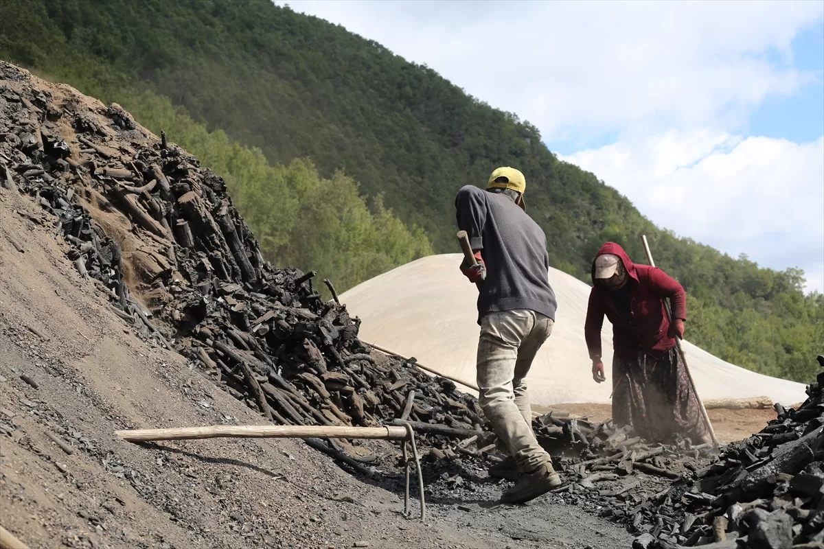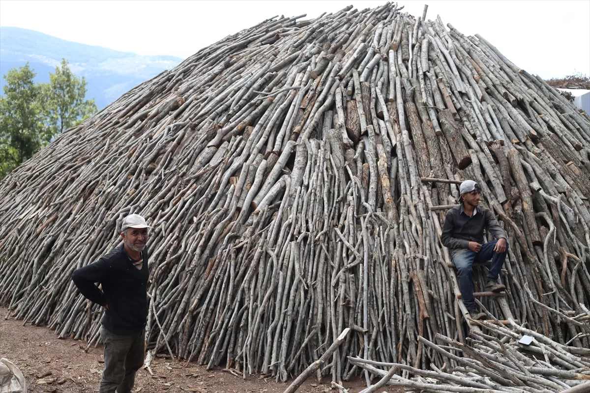 Bu ağaçların çöpe gitmediğini ve ekonomiye kazandırıldığını anlatan Eren, "Ormandan kesilen ağaçları tesisimizdeki ocaklara taşıyoruz. Ardından odunları üst üste yığıp alt taraftan ateşi yakarız. Ateş yakıldıktan sonra odunlar ortalama olarak 20-25 gün boyunca yanmaya devam eder ve kömüre dönüşür." diye konuştu.