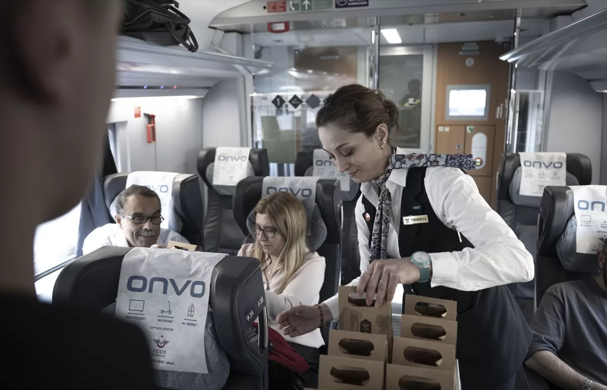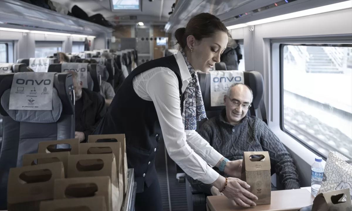 TCDD Taşımacılık tarafından trendeki bütün yolculara paket olarak ekmek ve hoşaf ikram edildi.