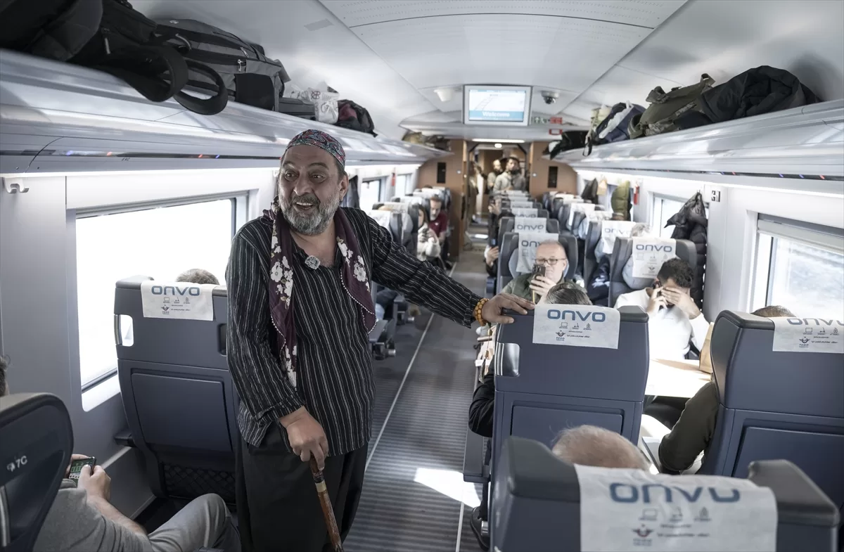 AA muhabirinin de yer aldığı tren seferinde, oyuncu Ahmet Yenilmez de "Çanakkale" temalı mobil oyununu sergiledi.