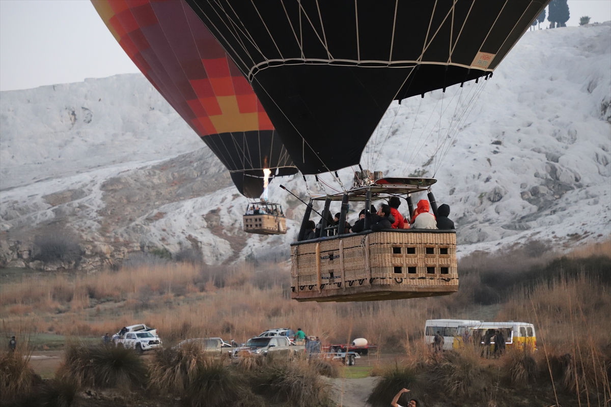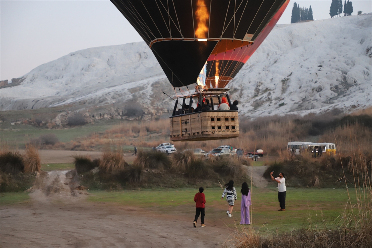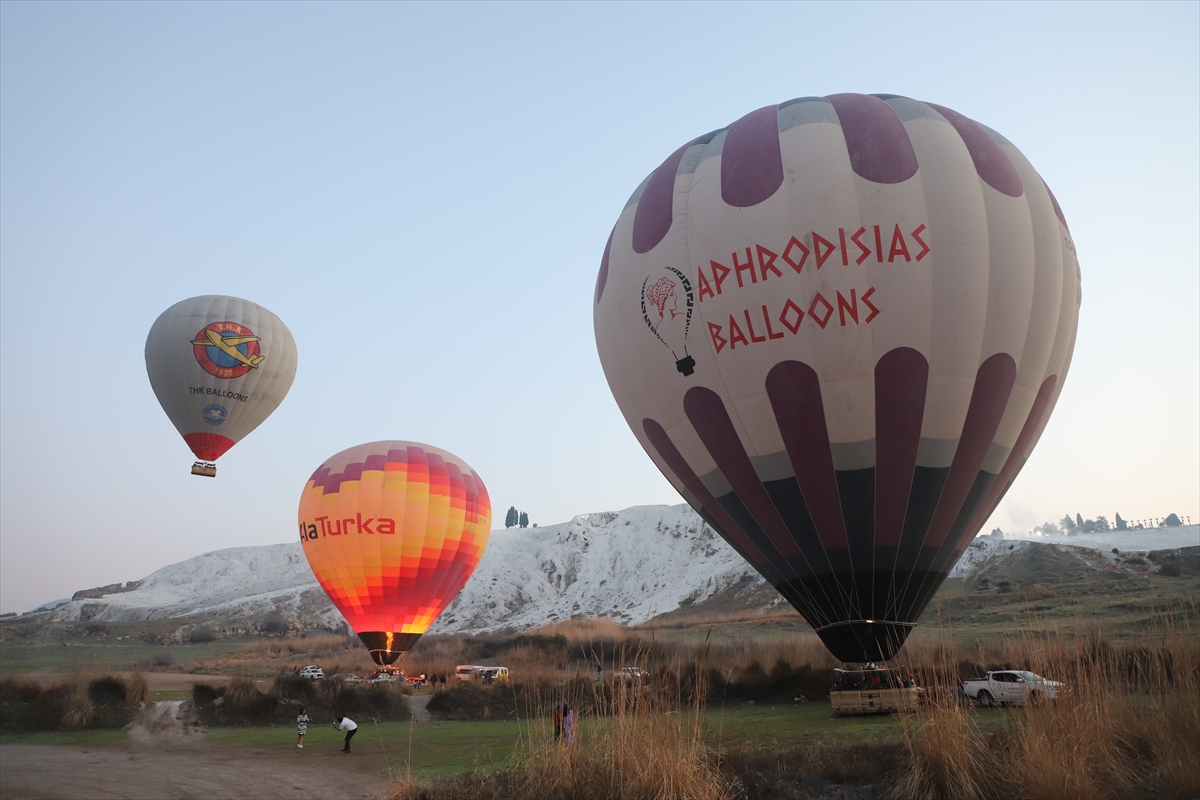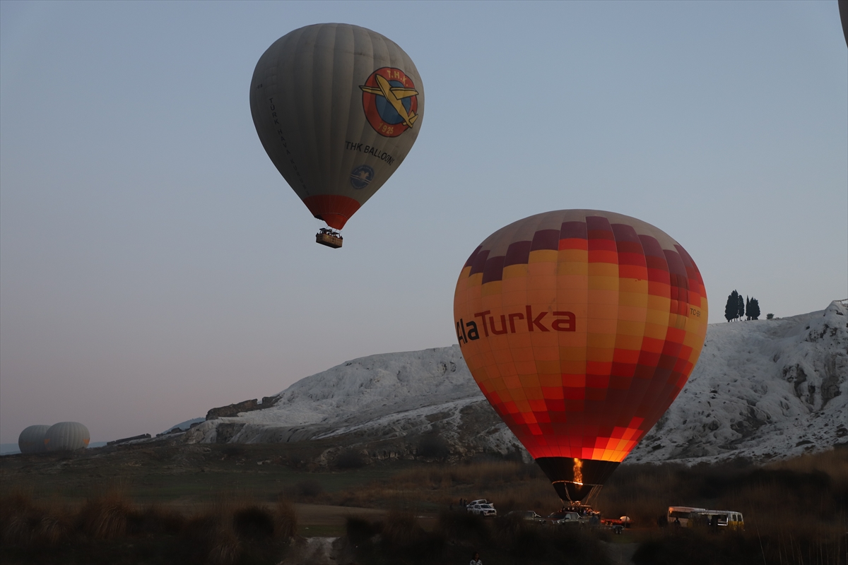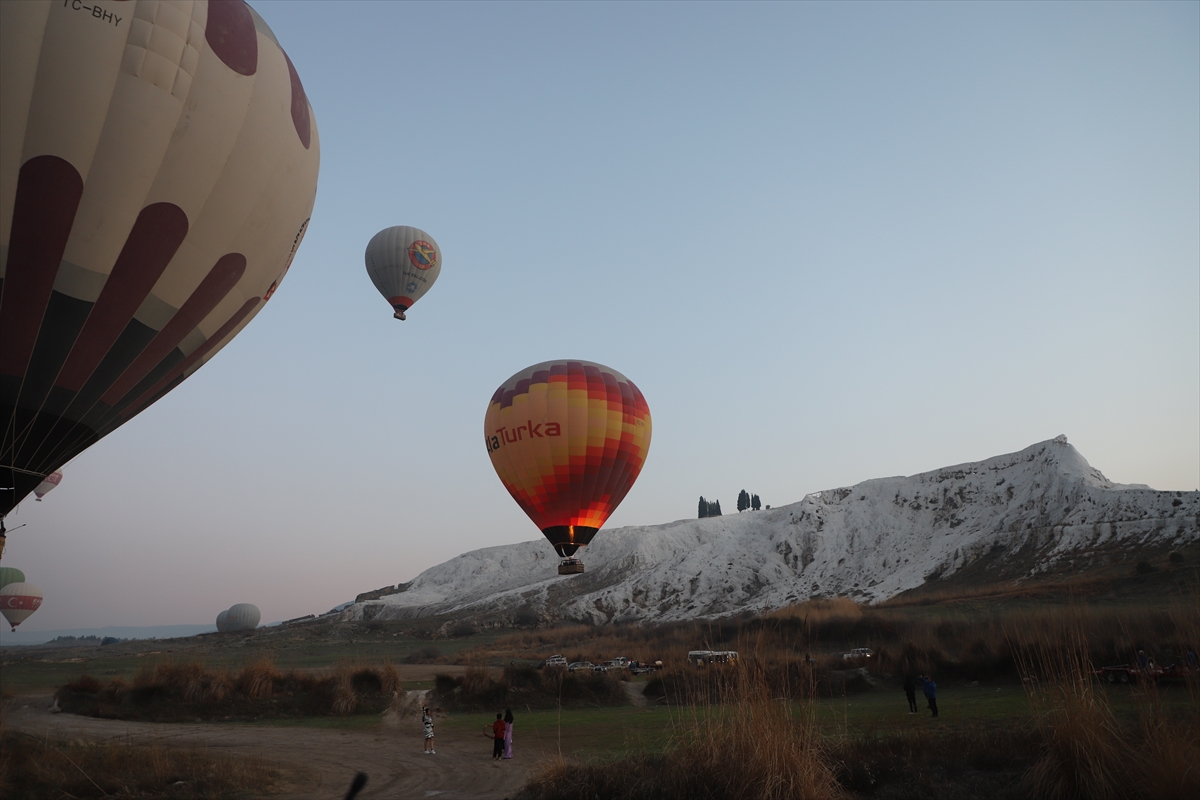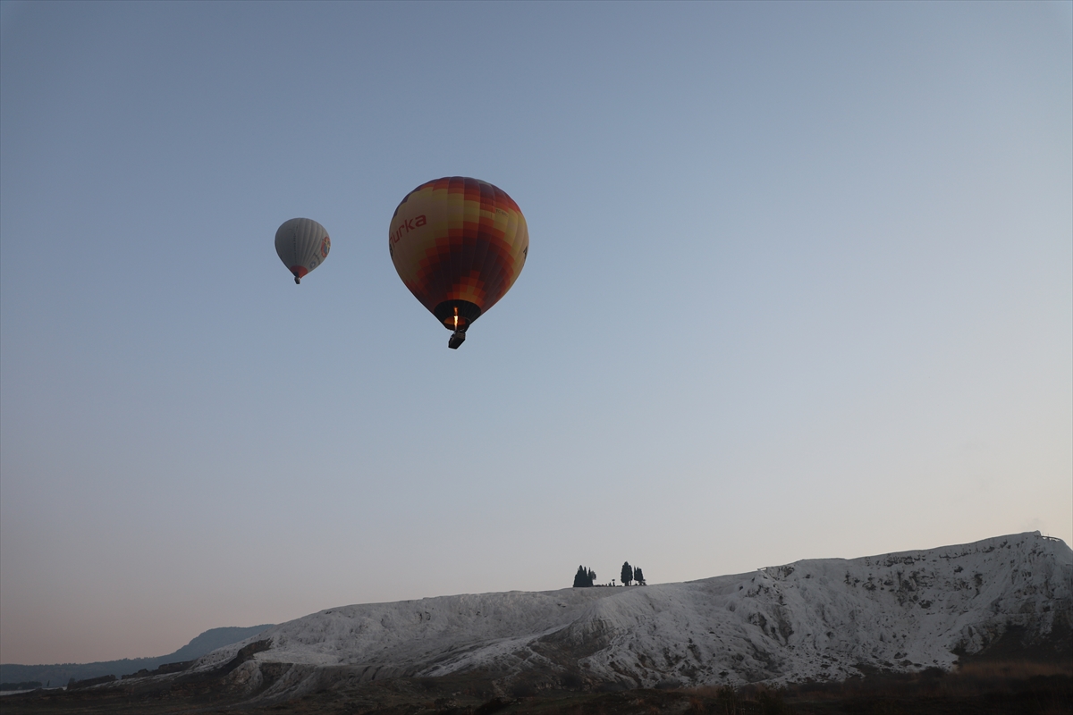 DENİZLİ (AA) – SEBAHATDİN ZEYREK – Doğal güzellikleri ve tarihi varlıklarıyla dünyaca üne sahip Pamukkale'yi kuş bakışı olarak havadan görmek isteyen yerli ve yabancı turistler, sıcak hava balon turlarına ilgi gösteriyor.