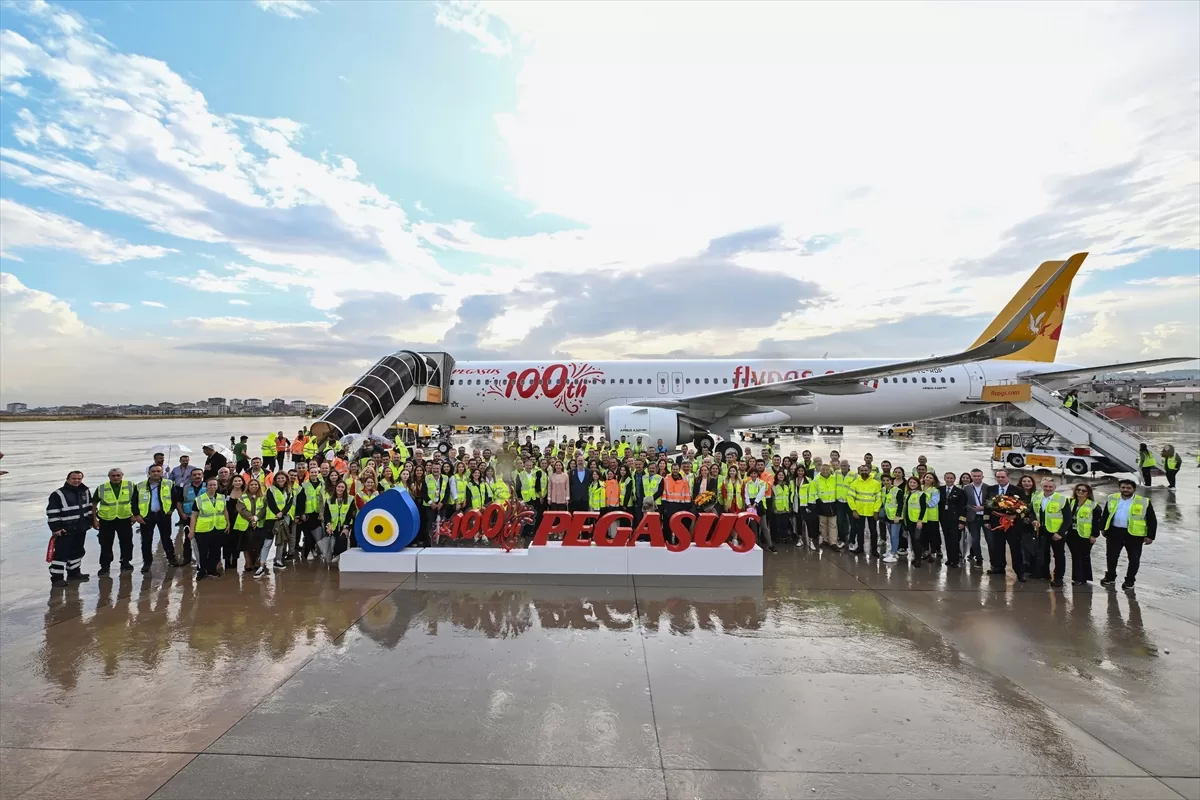 İSTANBUL (AA) – Pegasus Hava Yollarının Cumhuriyet’in 100. yılında filosuna kattığı "Cumhuriyet" isimli 100. uçağı, İstanbul Sabiha Gökçen Havalimanı’na indi.