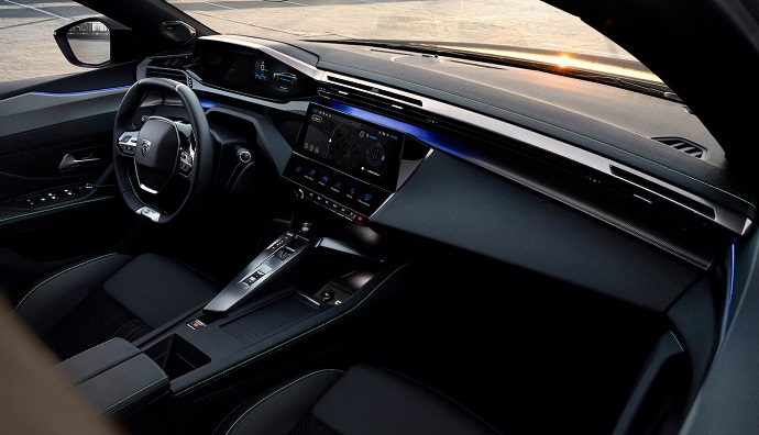 Tasarım sürecinde karakterli ve arzu nesnesi bir görünümün hedeflendiği yeni Peugeot 308 SW’de, tıpkı hatchback gövde tipinde olduğu gibi tavan çizgisi, iç mekândan ödün vermeden sportif ve dinamik bir görünümle uzanıyor. Hatchback versiyona kıyasla 55 mm daha uzun olan dingil mesafesi daha olgun bir siluet sunarken, daha geniş bir arka koltuk oturma alanı sunuyor. Yeni Peugeot 308 SW’nin arka kısmı ise, yeni Peugeot 308 ile aynı şekilde derinlemesine şekillendirilmiş ve buna bağlı olarak ışık yansımaları sunan karakteristik tasarım temasına sahip olmasıyla dikkatleri çekiyor. Tavana göre daha keskin alçalan yan cam kesiti, yeni Peugeot 308 SW’ye segmentinin en dinamik siluetini de kazandırıyor. Arka kısımda hatchback versiyon ile aynı ince tam LED stop lambaları kullanıyor, ancak onları birbirine bağlayan siyah şerit burada kullanılmıyor. Peugeot 308 SW bunun yerine, eklenen hacmi yansıtmak ve ek alana dikkat çekmek için özellikle arka kısımda üstyapıya odaklanıyor.