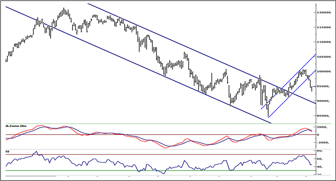 BIST100 endeksinde geçtiğimiz hafta 93.169-100.647 puan aralığında hareket edildi. Haftaya pozitif görüntü ile başlayan endeks, eylül ayı enflasyon verilerinin beklentilerin oldukça üzerinde gelmesi ile yoğun satış baskısı altında kaldı. Eylül ayında oluşan yükselen kanalın ve 22 günlük AO’sının altında hareketin başlaması ile endeksin teknik görünümü negatife döndü. Bu hafta endekste 50 ve 100 günlük AO seviyelerinin yaklaştığı 95.000/95.300 seviyeleri teknik yönde önemli konumdadır. Hafta başında bu bölge altında kalınması halinde 92.500 ve 90.000 destekleri gündeme gelebilir. Olası tepki alımlarında 95.000 üzerine yerleşme olması halinde ise 97.000 ve 98.500 haftalık bazda hedef direnç olabilir. Endeksin 5 günlük AO’sı, 22 günlük AO’yı aşağı yönde kesmiş durumda. Orta vadeli göstergesi MACD haftanın son iki gününde satım yönünde harekete geçti. Dolar bazında ise geçen hafta 1,6944 cent test edildikten sonra hafta 1,54 centten kapatıldı. Orta vadeli destek 1,50 cent seviyesinde bulunuyor. BIST100 endeksinde hafif eksi ile güne başlanabilir.
