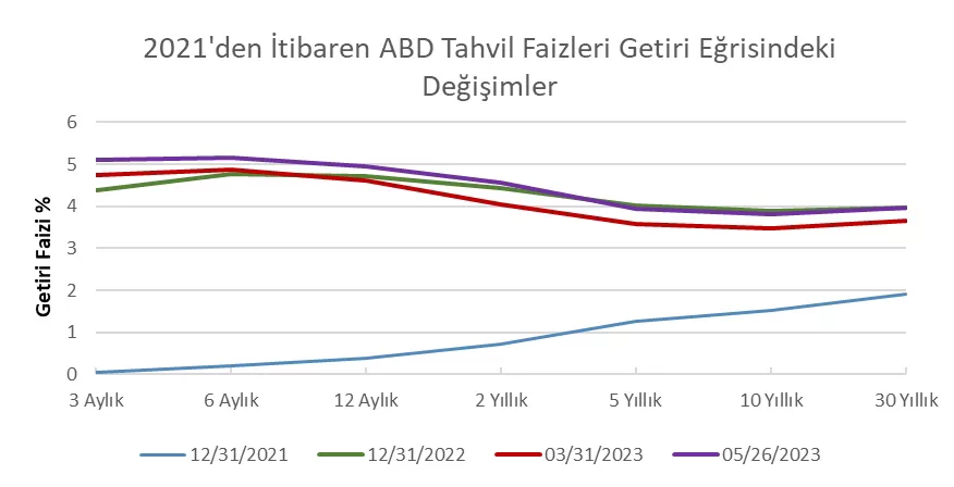 Piyasalar nihayet Nisan ve Mayıs aylarında 2022’nin başından beri yatırımcıların tetikte olmasına neden olan finansal krizlerden biraz da olsa nefes alabildi. Tabi piyasaların her zaman bir hareket halinde olduğu düşünülürse son birkaç ayın tamamen olaysız geçtiği söylenemez. Örneğin ABD’de yayınlanan olumlu ekonomik veriler ve FED’in faiz kararı hisse senetlerindeki iyimser havayı arttırdı. Tahviller ise hisse senetlerindeki olumlu havadan pek etkilenmedi. Dolayısıyla ABD tahvil faizlerinin getiri eğrisi aşağı yönünü (daha kısa vadeli getirilerin, uzun vadeli getirilerden daha yüksek olması durumu) muhafaza etti. Bunun nedenini anlamak için de son dönemdeki piyasa haberlerine bakmak yeterli.