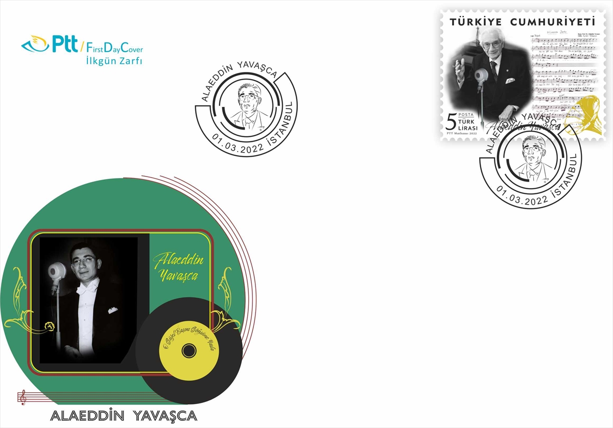ANKARA (AA) – PTT tarafından, tıp dünyası ve Türk musikisine katkılarından dolayı "Alaeddin Yavaşca" konulu tek değerli anma pulu ile ilk gün zarfı tedavüle sunuldu.