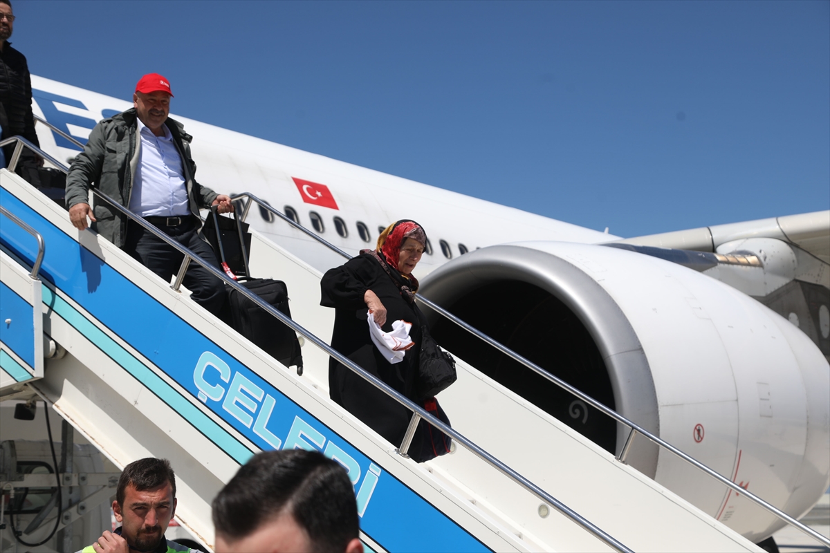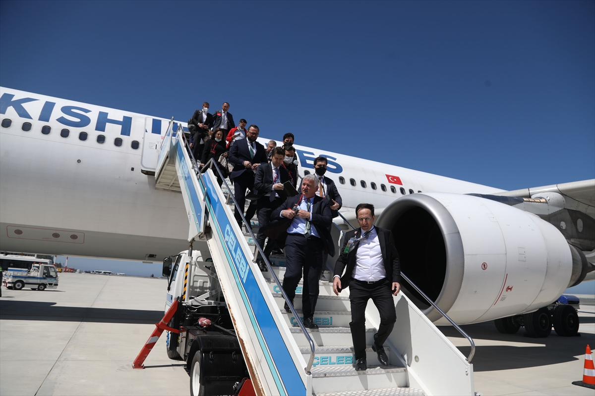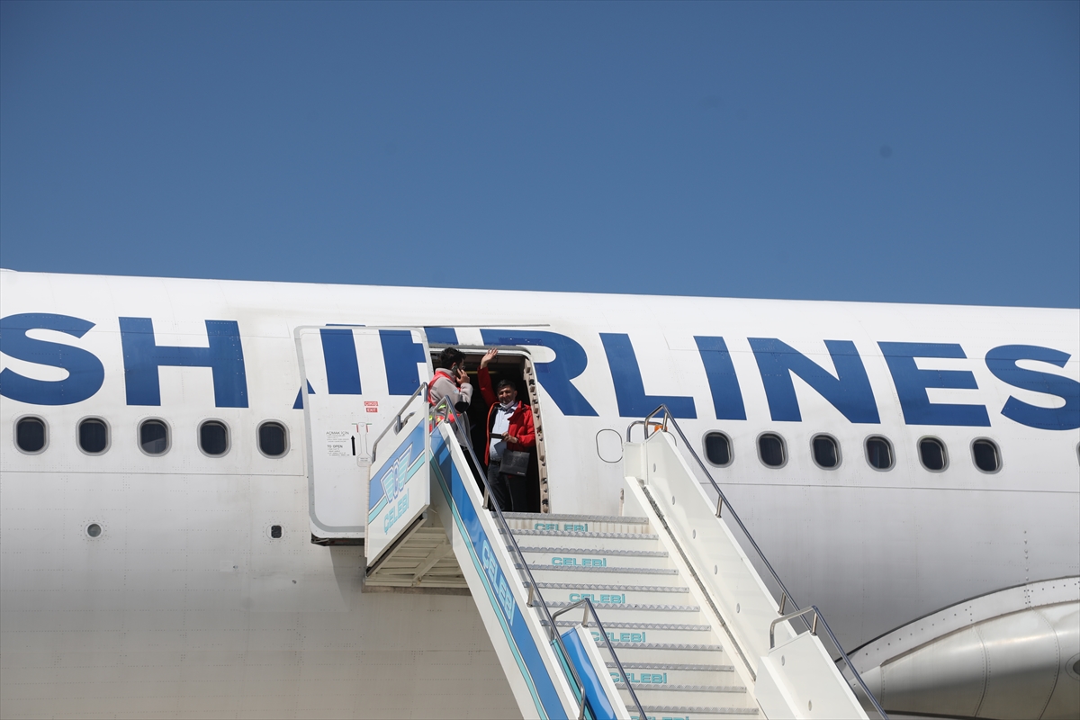 Uçaktaki yolcular, Ulaştırma ve Altyapı Bakanı Adil Karaismailoğlu ile alanda bulunan kişilerce çiçeklerle karşılandı.