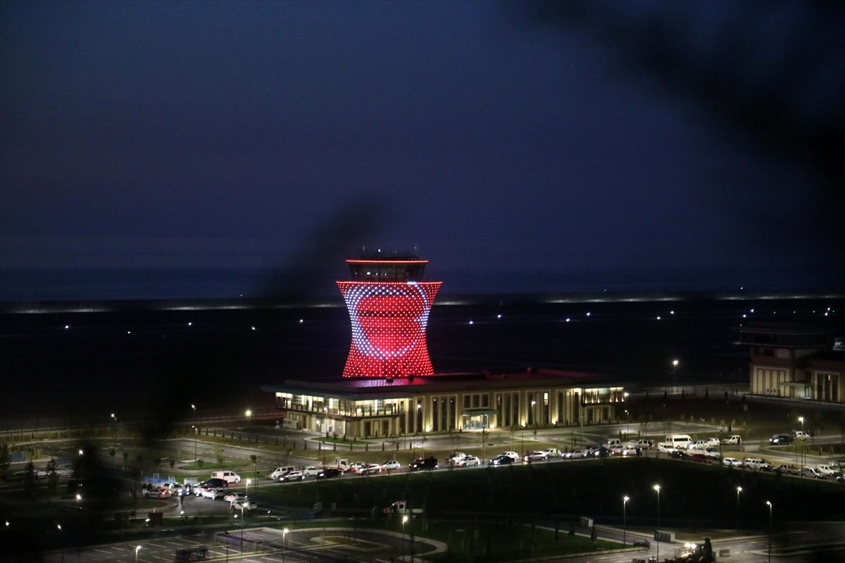 Gece saatlerinde çay bardağı şeklinde inşa edilen kule ışıklandırılarak Türk bayrağı figürü yansıtıldı. 3 bin metre uzunluğundaki pist ise aydınlatıldı.
