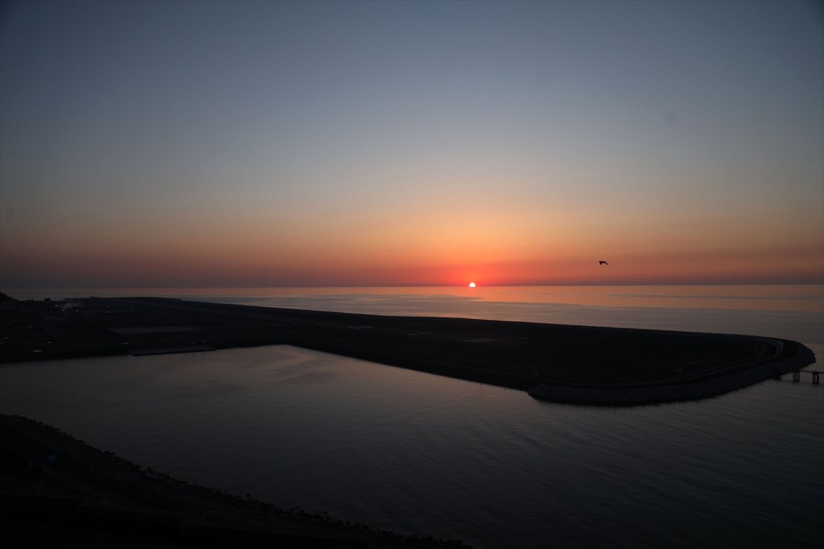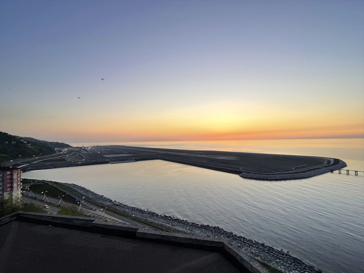 Öte yandan gün batımı ile Ordu-Giresun Havalimanı'nın ardından Türkiye'nin deniz dolgusuyla inşa edilen ikinci havalimanında güzel görüntüler oluştu.