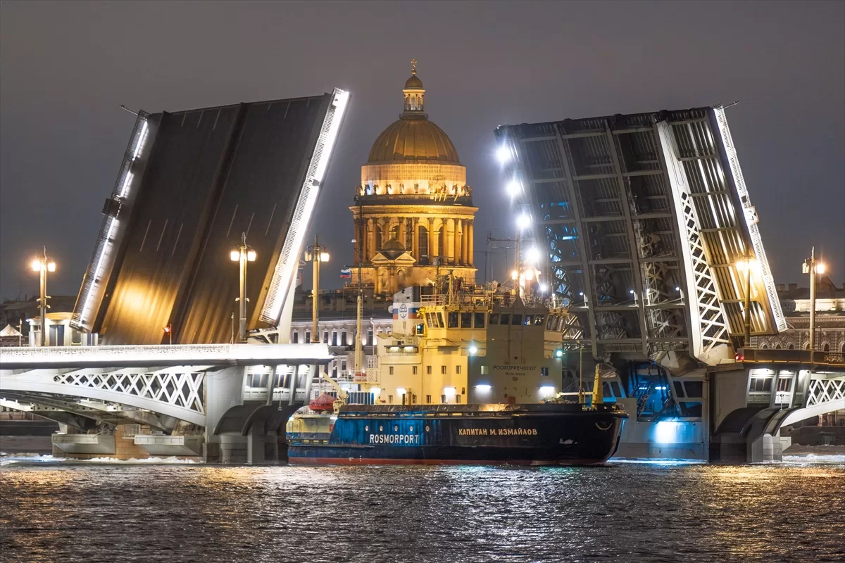 St. Petersburg'da genellikle yaz aylarında gemilerin geçişi için açılan köprüler, bu operasyonla Akkuyu NGS için kış şartlarında açılmış oldu.