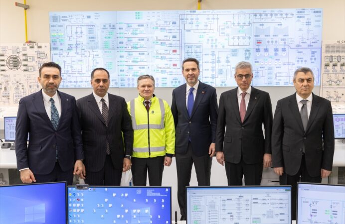 Santralin ilk ünitesinin ana tesislerindeki çalışmaları yerinde gören heyetler, işletme personelinin halihazırda planlı vardiya düzeninde çalıştığı 1. Güç Ünitesi'nin ana kontrol odasında incelemelerde bulundu.