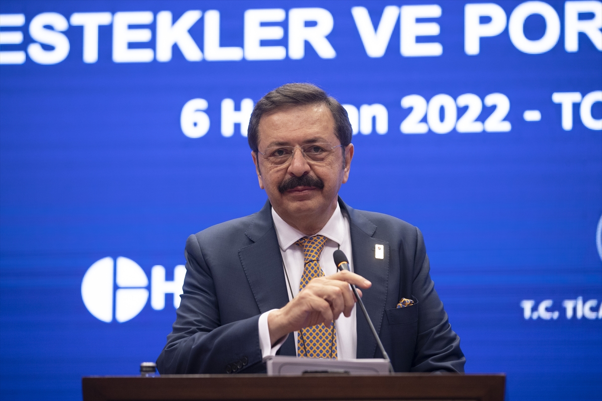 "Bugün de sizin liderliğinizde, yine hayırlı iş gerçekleşiyor. Geçtiğimiz yıl temmuz ayında yine bu salonda, Sektörel Ekonomi Şurası'nda bir araya gelmiş, sektörlerimizin talep ve sıkıntılarını aktarmıştık. Hizmetler sektörünün ihracat potansiyelinin etkin şekilde değerlendirilmesini ve yeni bir teşvik politikasına ihtiyaç duyulduğunu dile getirmiştik. Siz de (Ticaret Bakanı Mehmet Muş) o gün, hizmet ihracatına yönelik yeni bir yapılanmanın müjdesini vermiştiniz."