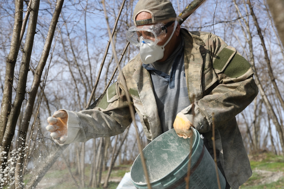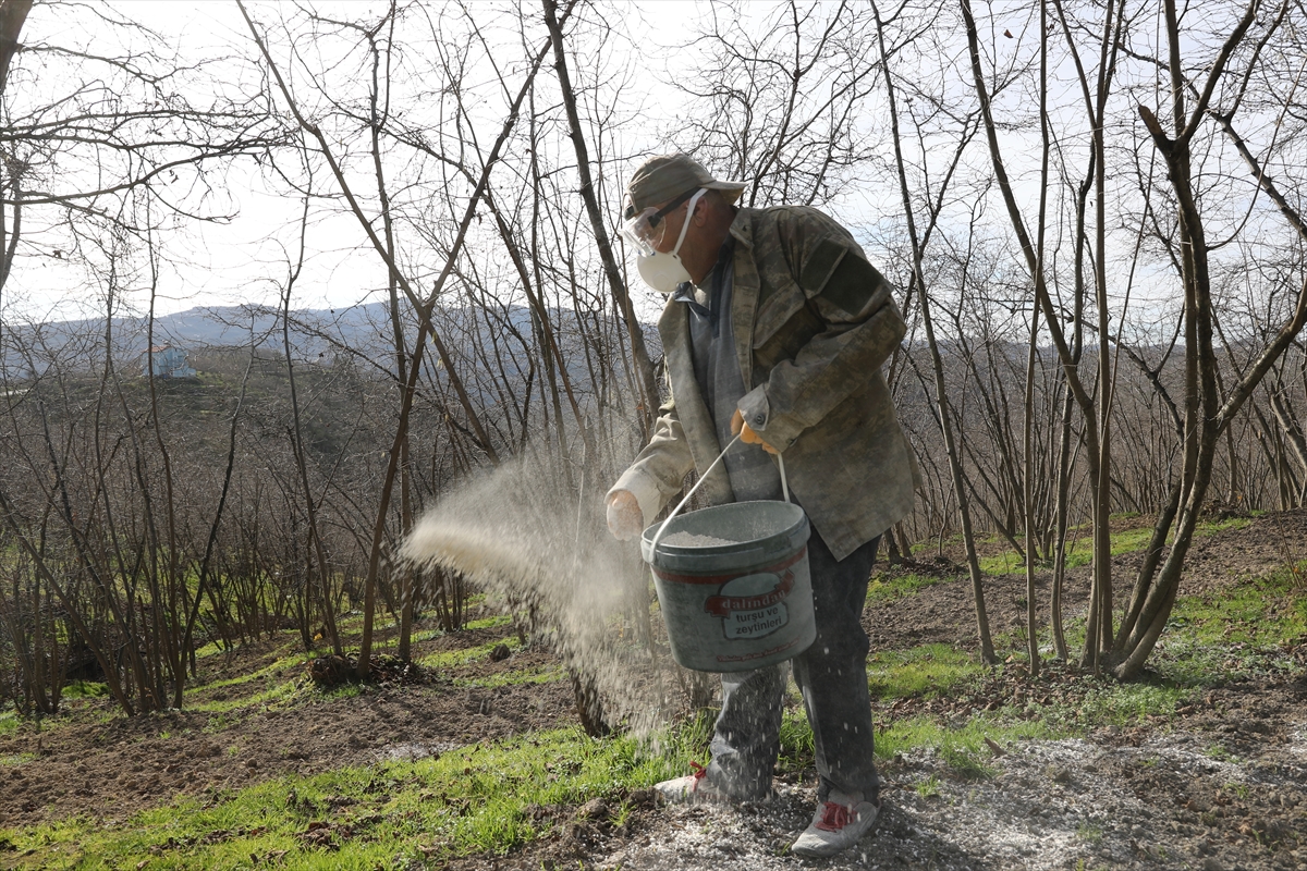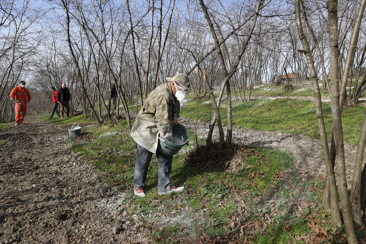SAKARYA (AA) – Sakarya'nın Kocaali ilçesinde üreticiler, fındıkta aside karşı granül kireçli çalışma başlattı.