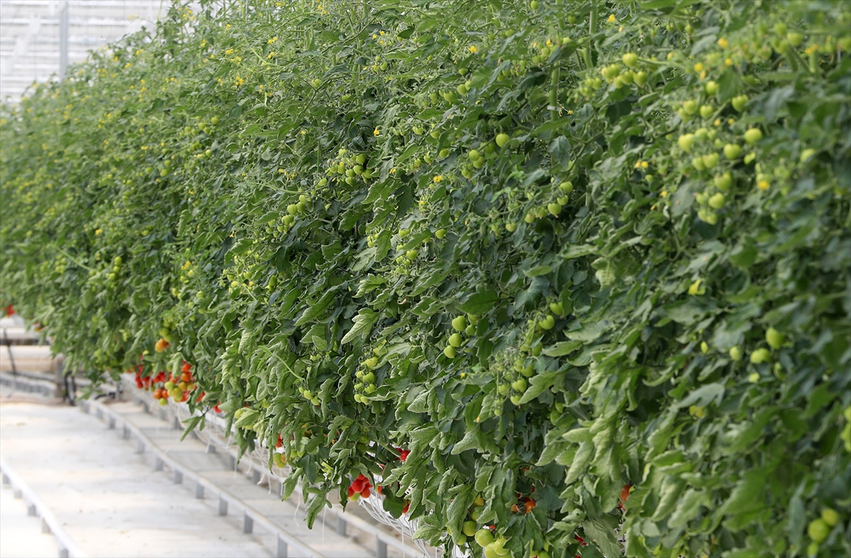 Belediyeden yapılan açıklamaya göre, Büyükşehir Belediyesinin tarımsal üretimde Türkiye'ye örnek projesi merkezde hasat için geri sayıma geçildi. 8 çeşit 65 bin kök domates fidesinin dikildiği tesiste bitkilerin uzunluğu 1 metrenin üzerine çıktı. Bitkilerin üzerinde yer alan domatesler de kızarmaya başladı.