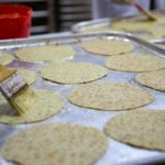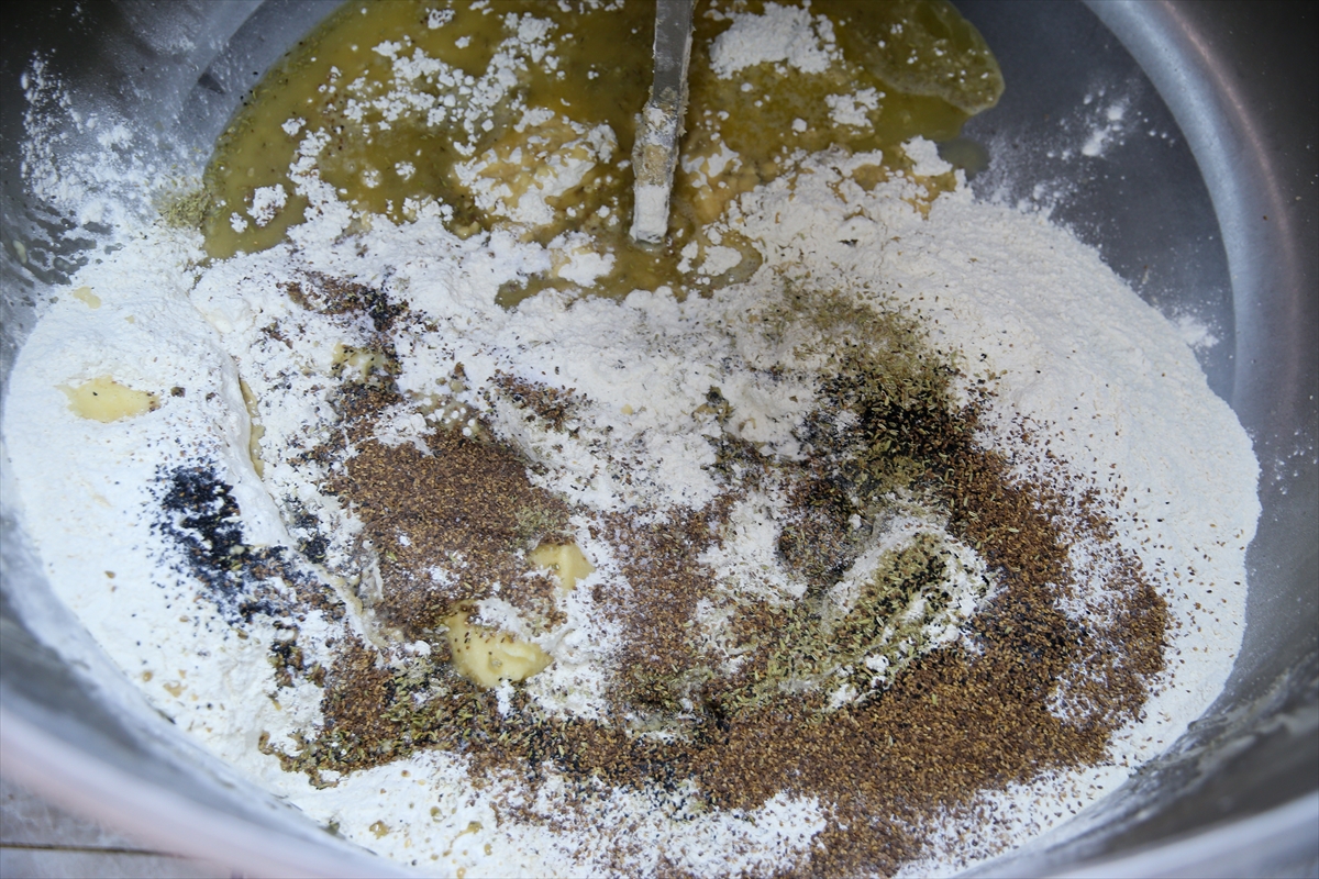 İpekyolu Samsat "Samsat Çöreği" Geçim Kaynağı Tesisi'nde istihdam edilen 12 kadın, içerisinde un, rezene, susam, çörek otu, tuz, bitkisel susuz yağ ve sarı gelin otu kullanarak üretime başladı.