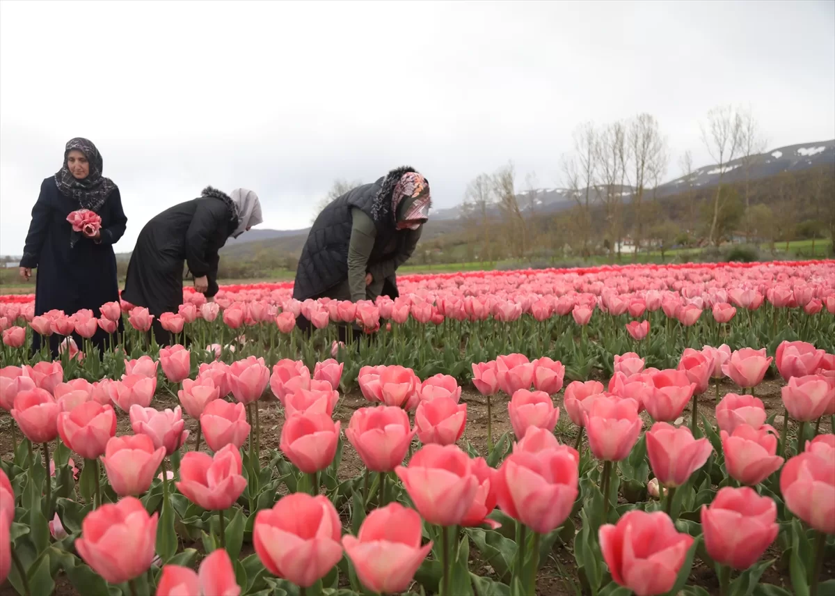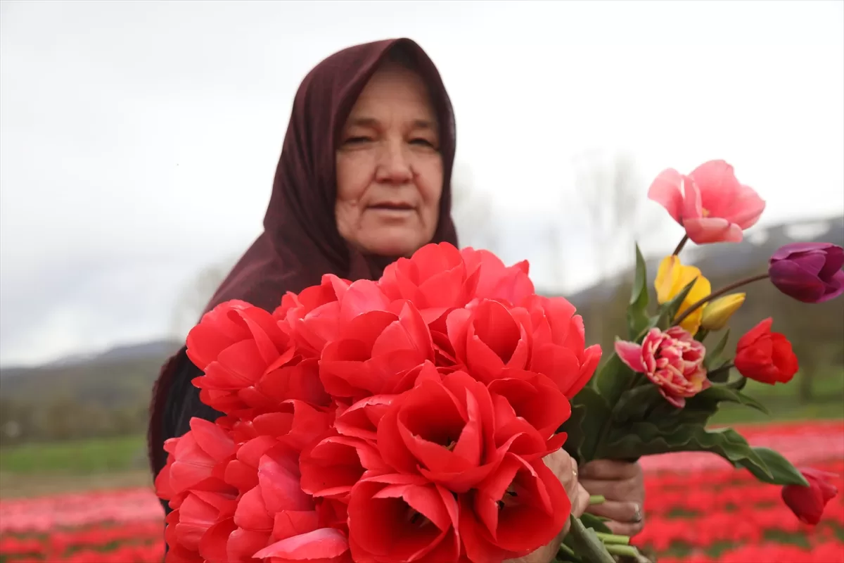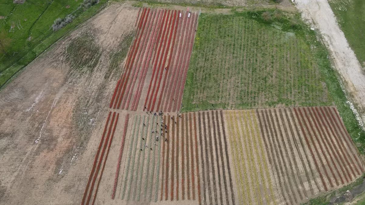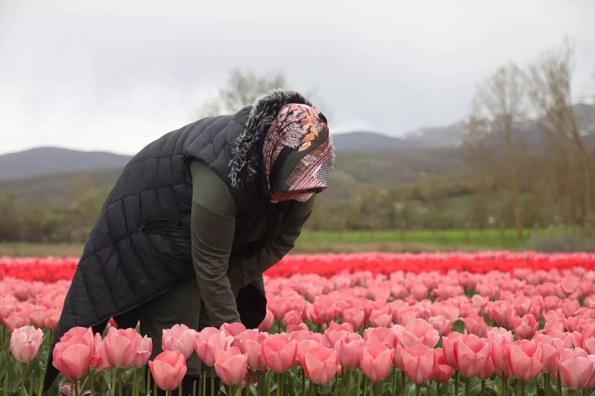 Farklı renklerdeki lalelerin büyümesiyle hasada başlandı.