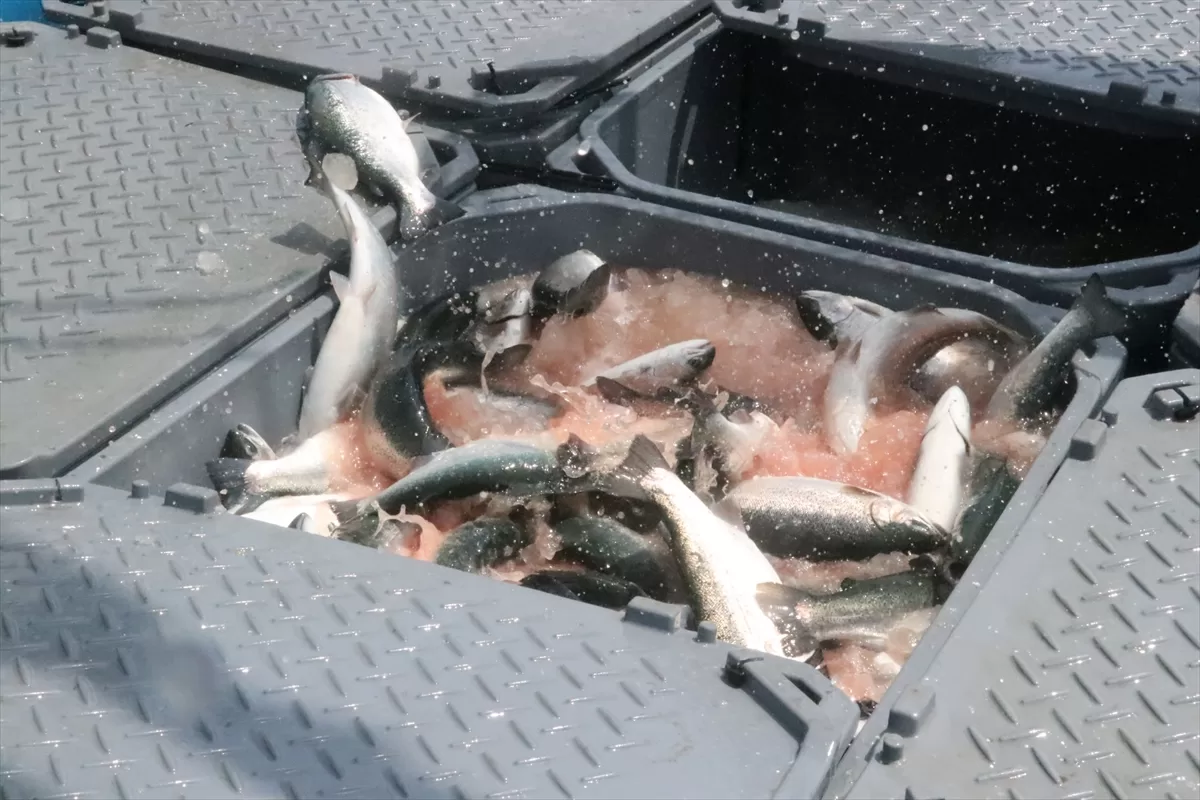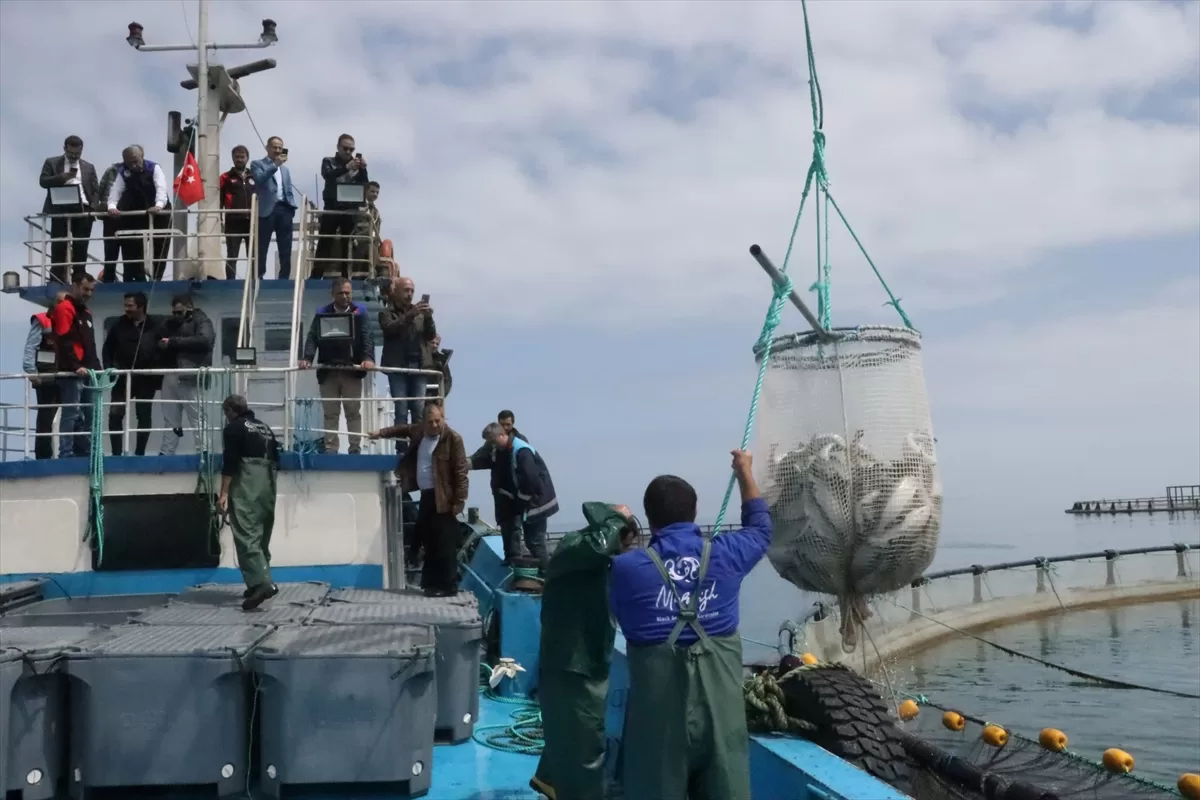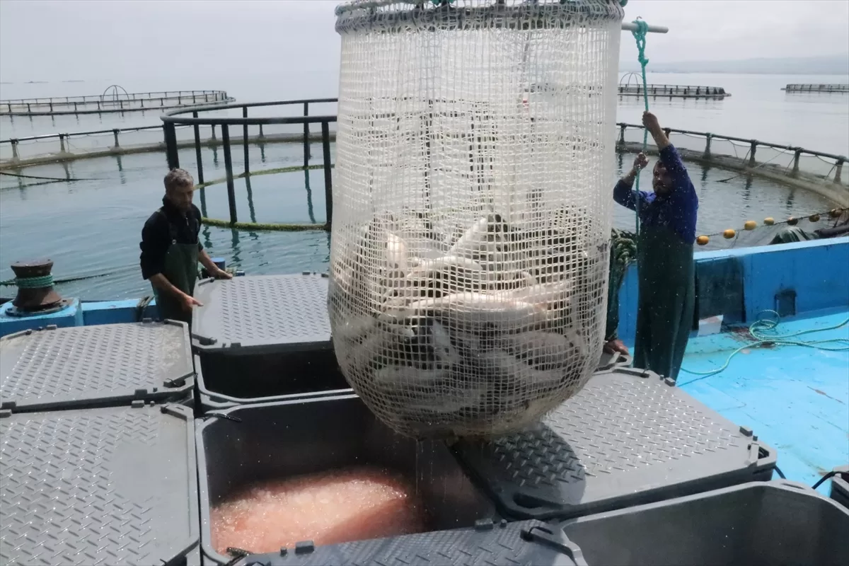 İl Tarım ve Orman Müdürlüğünden yapılan açıklamaya göre, sezonun ilk somon hasadı, Yakakent Limanı'nda gerçekleştirildi.