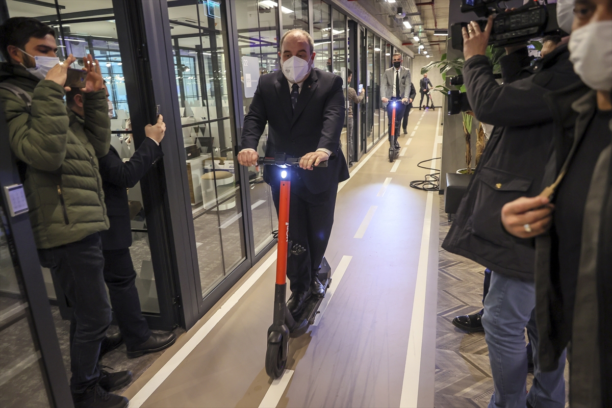 Törenin ardından Varank, elektrikli scooter ile merkezi gezerek, ofislerdeki girişimcilere ve çalışanlara ziyarette bulundu.